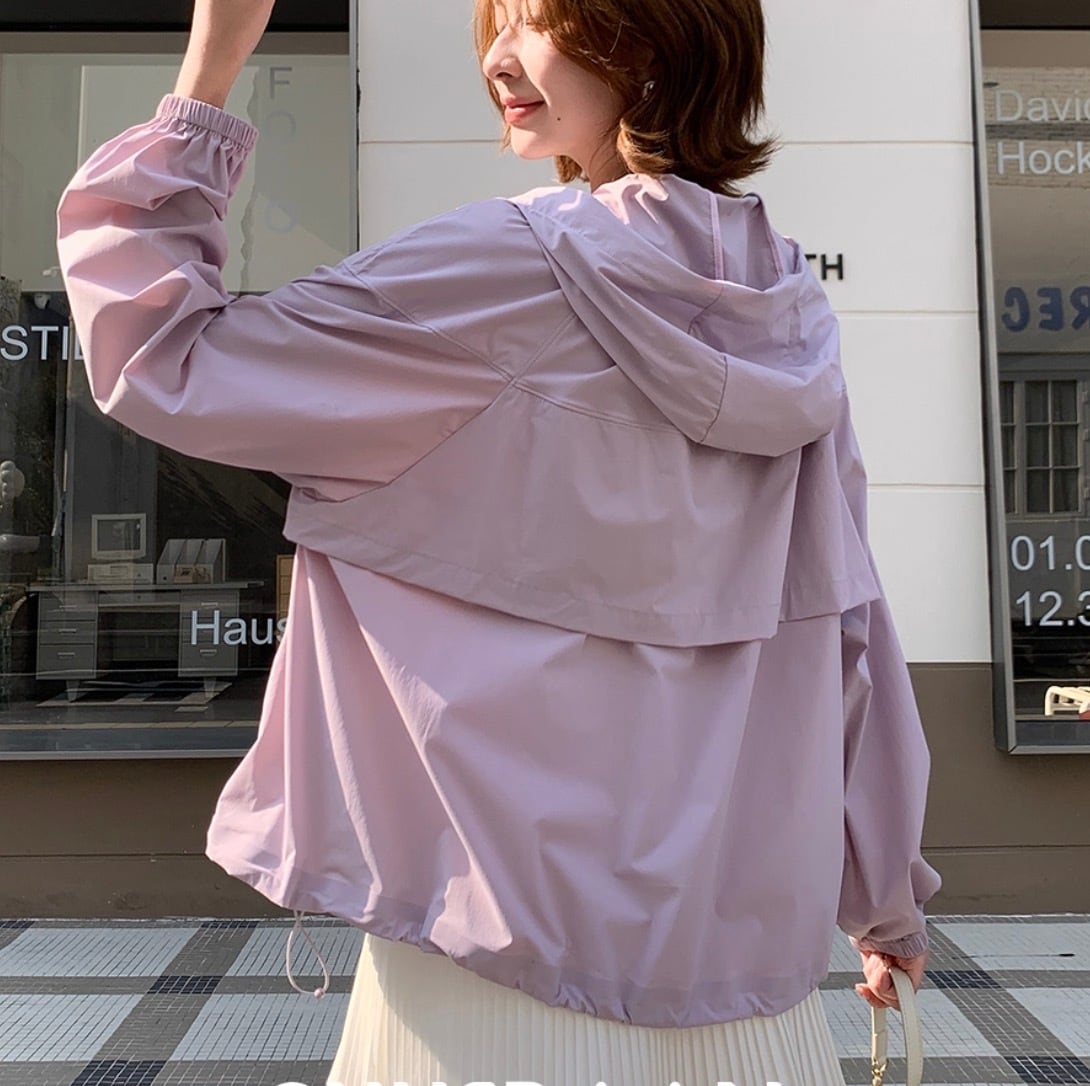 レディース トップス ブルゾン 上着 ミディアム丈 袖あり 長袖 ボリューム袖 萌袖 襟なし 切り替えデザイン スマート フード付き ファスナー ポケット 前開き 薄手 ナイロン かわいい 大人可愛い きれいめ シンプル カジュアル 上品 おしゃれ お洒落 レトロ 大人女子 こなれ感 ラフ ラブリー キュート ガーリー 個性的 クール モード系 エレガント モダン 主役級 存在感 抜け感 無地 レディース デート お出かけ 女子会 休日 アウトドア 旅行 着回し 普段使い ファッション 定番 色展開 | SPARKJOY レディースファッション