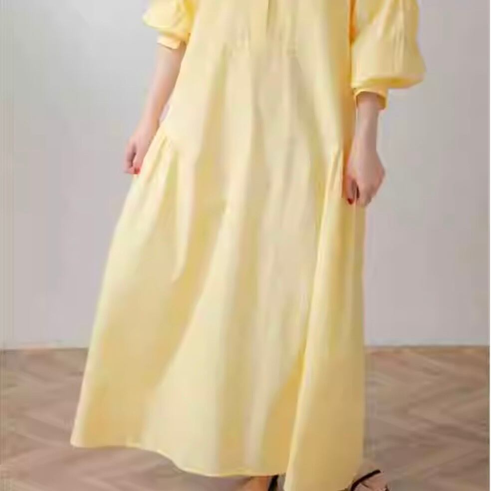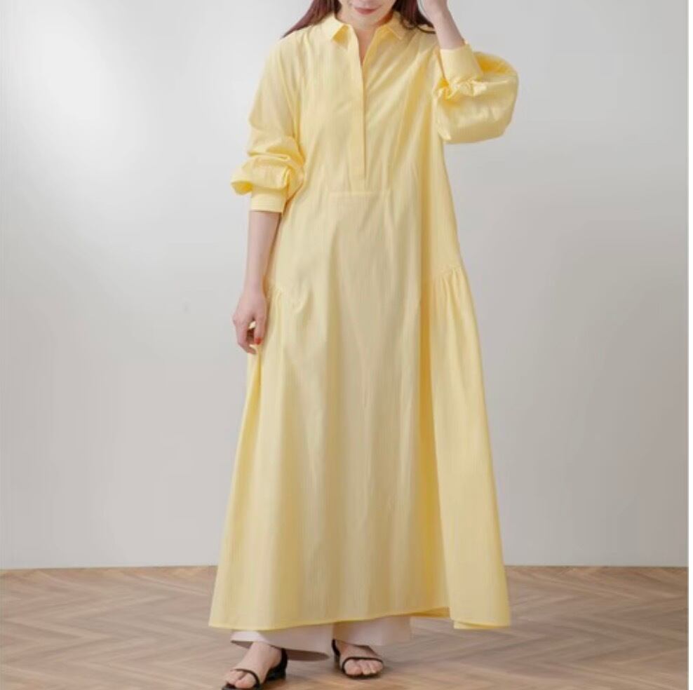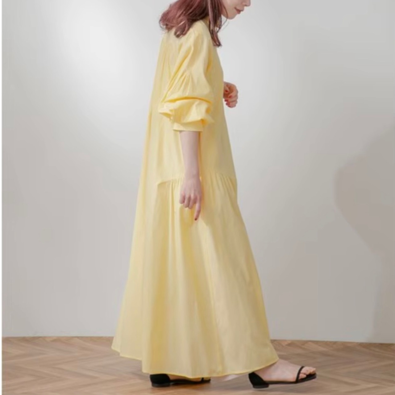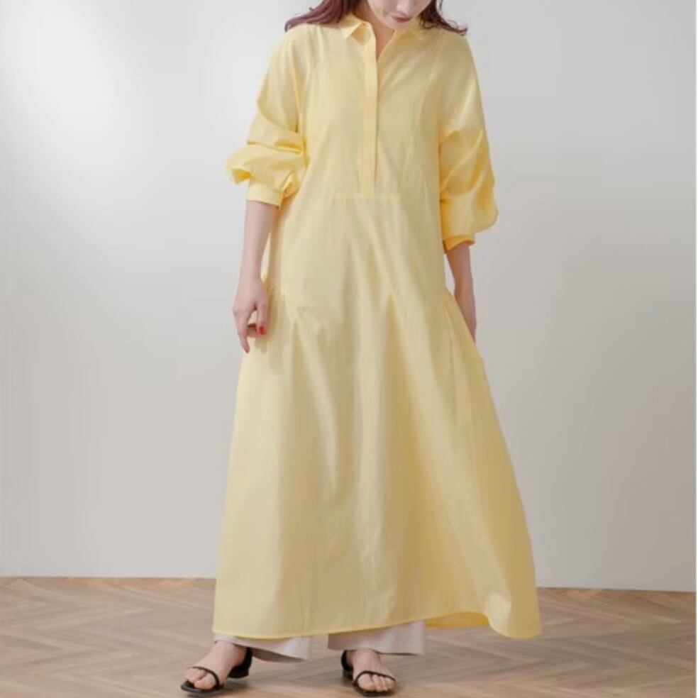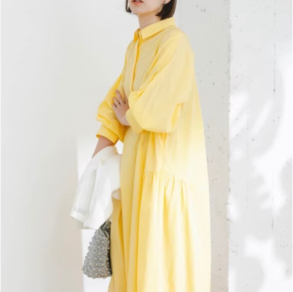 大人可愛い印象を与えるイエローワンピースが登場!シャツワンピースのデザインに、ボリューム袖とイレギュラーヘムが特徴的で、デートや女子会、お出かけシーンで大活躍間違いなし!前開きのファスナー仕様で着脱もスムーズ。セミフレアのシルエットが心地よく、シンプルながらも存在感を引き立ててくれる一枚です。ゆったりとしたサイズ感は、ラフでもきれいめでも幅広いスタイルに合わせられ、休日のお出かけや旅行にもぴったりです!