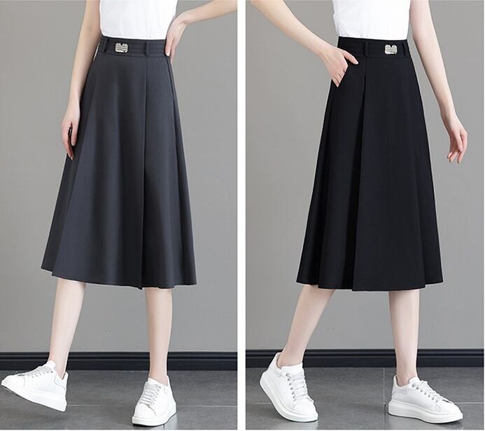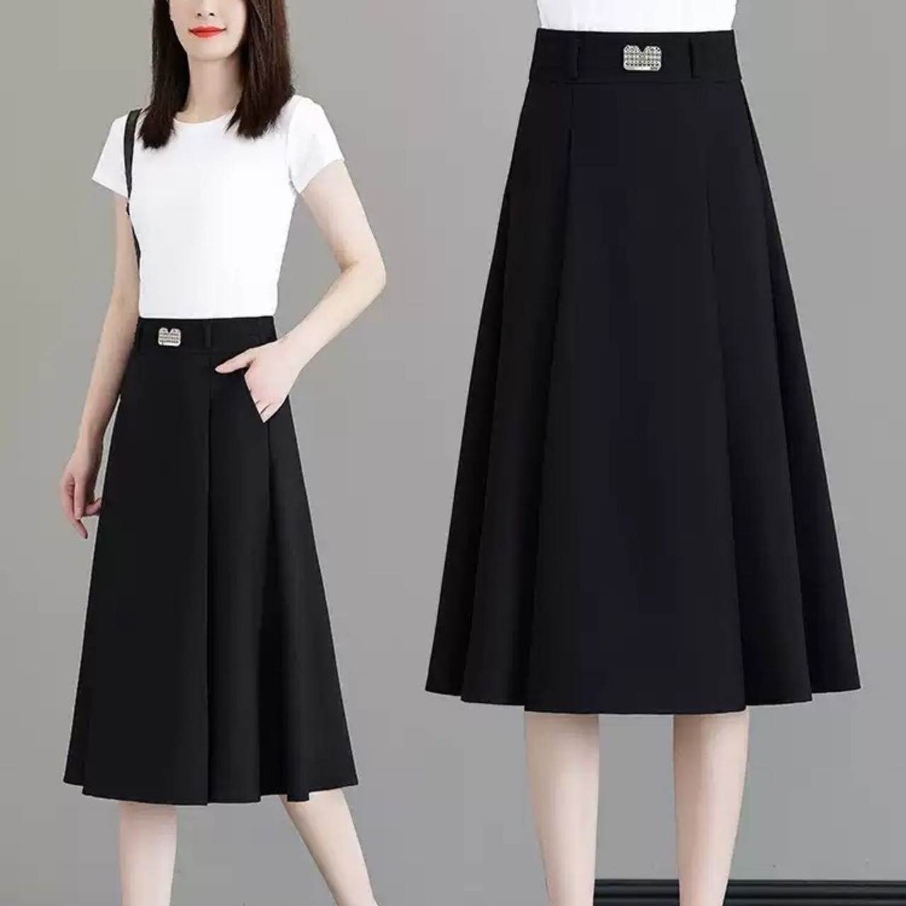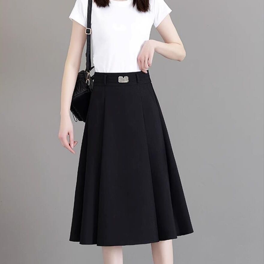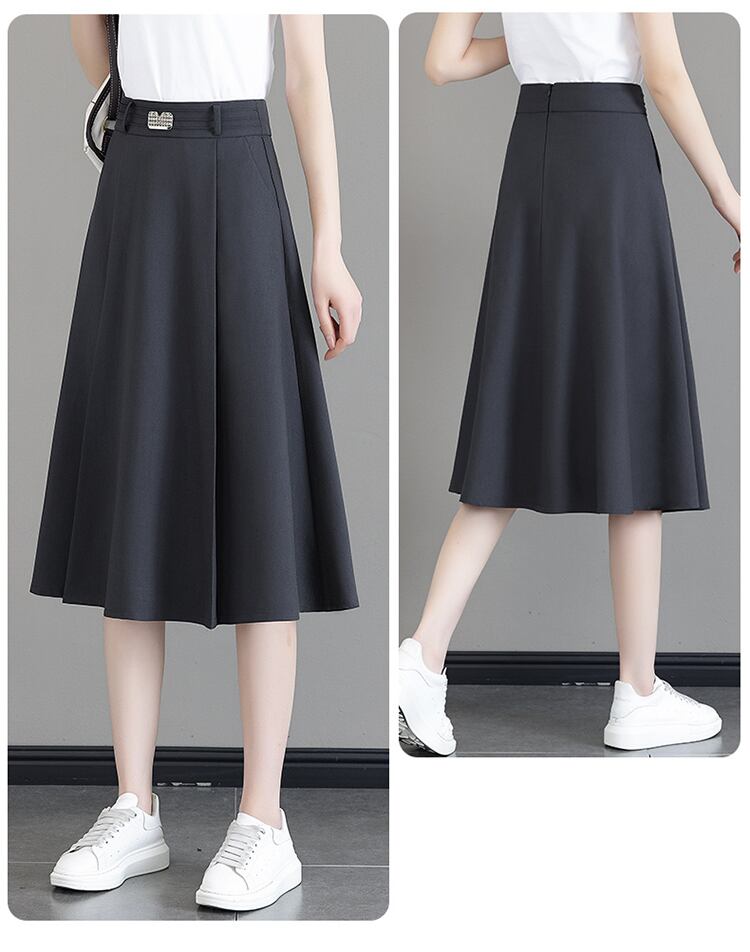 レディース スカート ボトムス 膝下 ミディアム丈 セミフレア Aライン タックプリーツ かわいい 大人可愛い きれいめ シンプル 上品 おしゃれ こなれ感 個性的 クール エレガント モダン 抜け感 キュート 都会的 ベーシック ナチュラル 無地 オフィス ビジネス OL 通勤 旅行 レストラン 休日 ホテル ショッピング 合コン コンパ カフェ 婚活 アースカラー モノトーン 美脚 脚長 普段使い 着回し インスタ映え S M L XL 2XL 3XL 4XL ブラック グレー 大人カラー 秋カラー | SPARKJOY レディースファッション