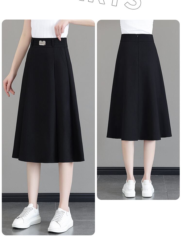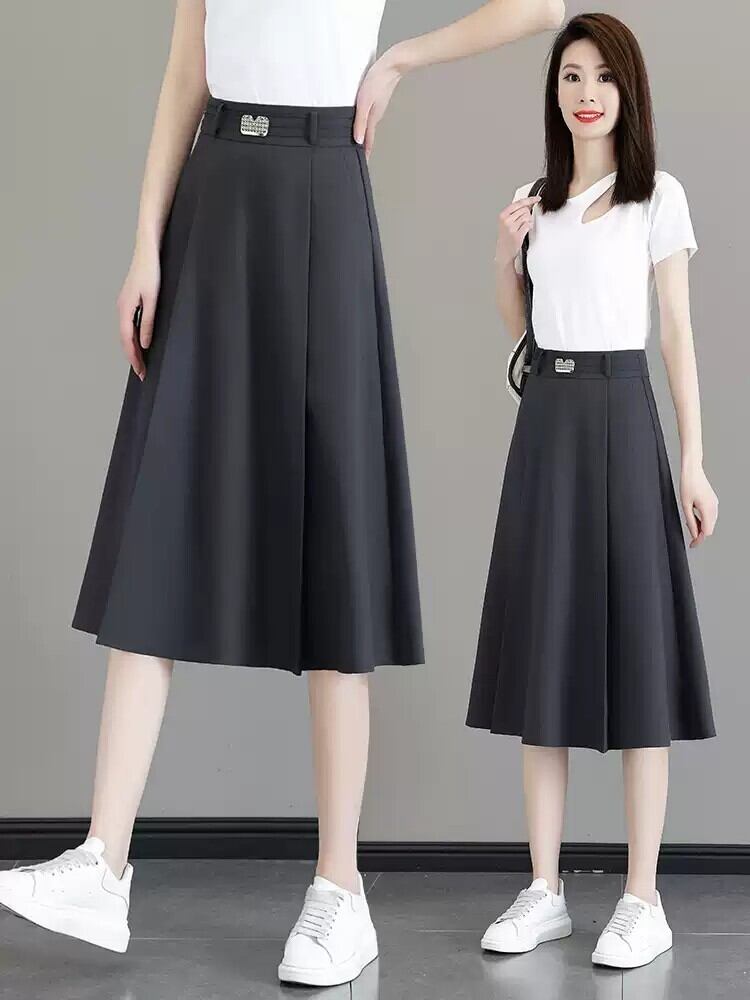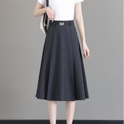 セミフレアデザインが特徴で、膝下のミディアム丈がエレガントな印象を与えるスカート♡