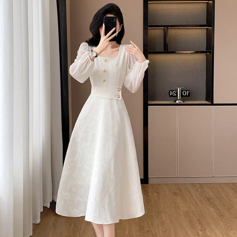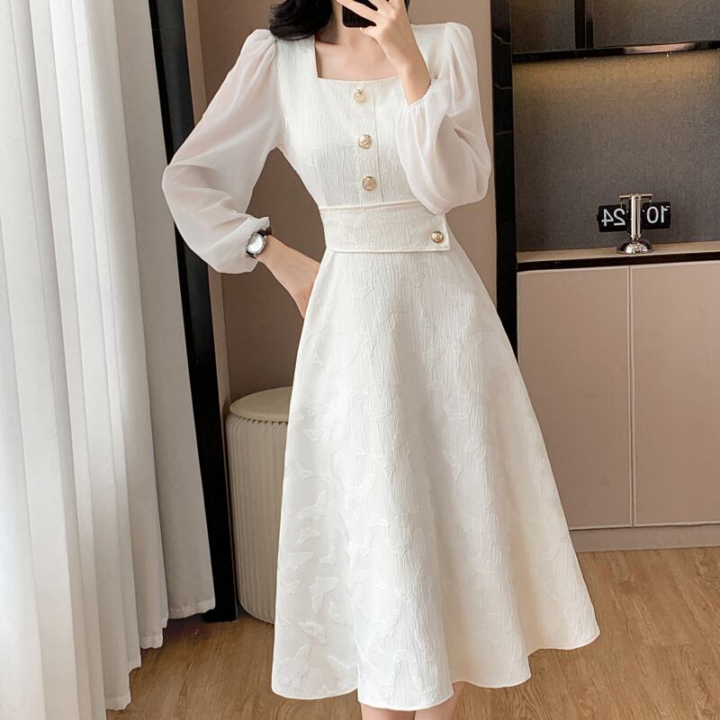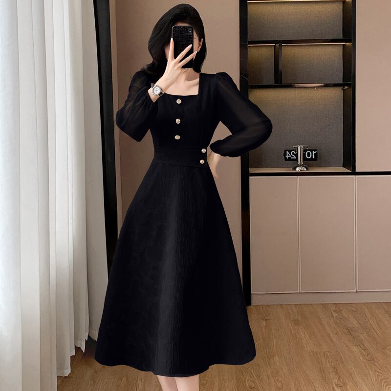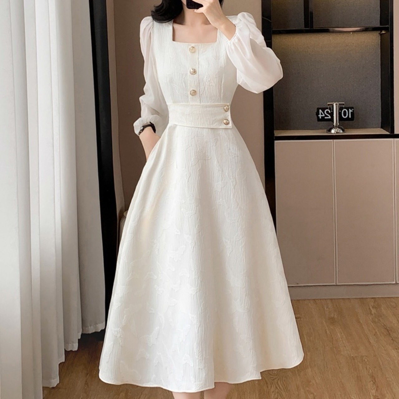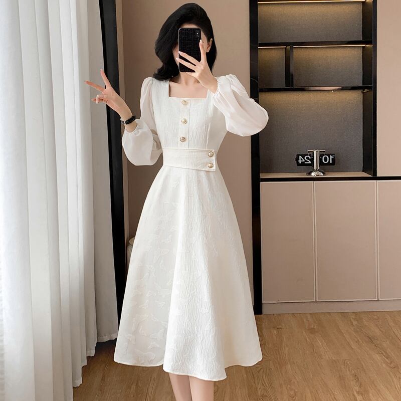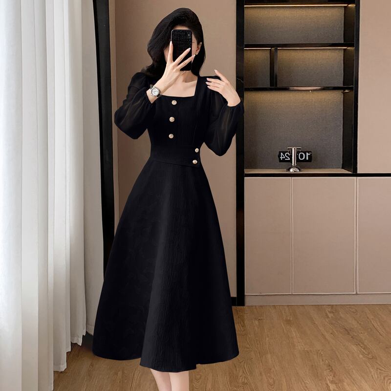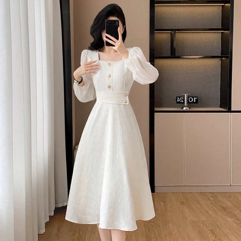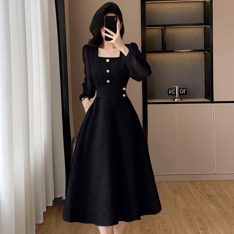 ワンピドレス スクエアカラー ハイウエスト スリム フレア ミディアム丈 ボタン レディース ワンピース 大人可愛い きれいめ 上品 謝恩会 二次会 披露宴 デート お出かけ パーティー イベント レストラン ホテル ガーデン ショッピング コンサート 合コン コンパ カフェ 婚活 アースカラー モノトーン 韓国 オルチャン コーデ 楽ちん 美脚 脚長 モテ 清楚 トレンド 流行 インスタ映え 定番 M L XL 2XL 3XL 4XL ブラック オフホワイト ベーシックカラー 大人カラー 秋カラー | SPARKJOY レディースファッション