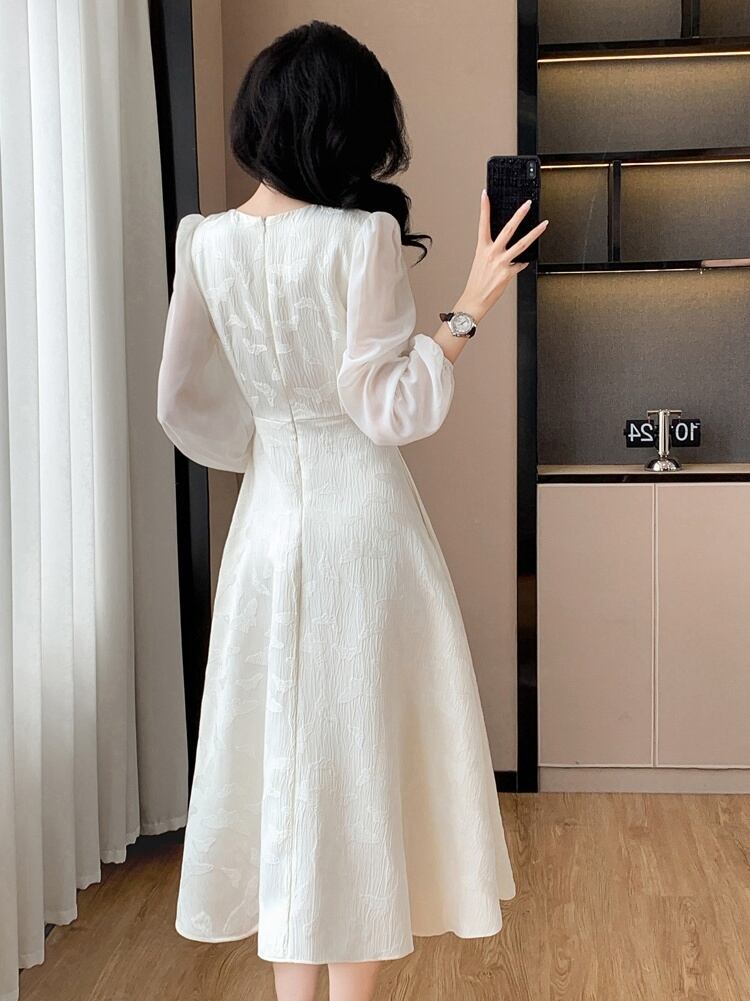 スクエアカラーとハイウエストデザインが特徴的で、特別な日の謝恩会や二次会、披露宴などで上品さを演出します。