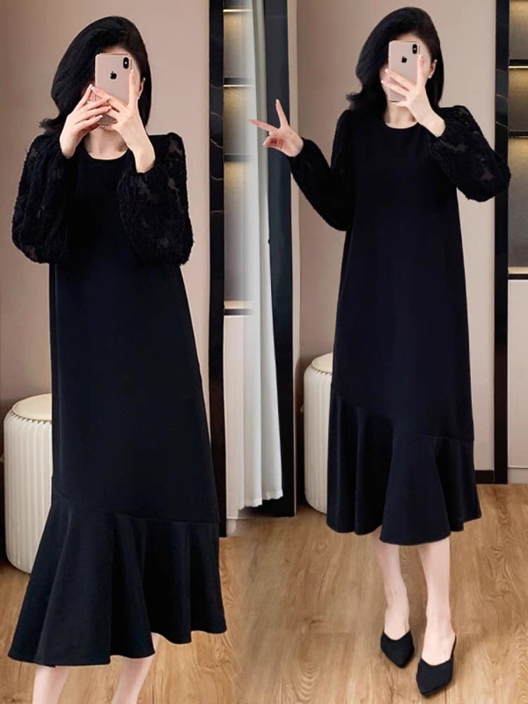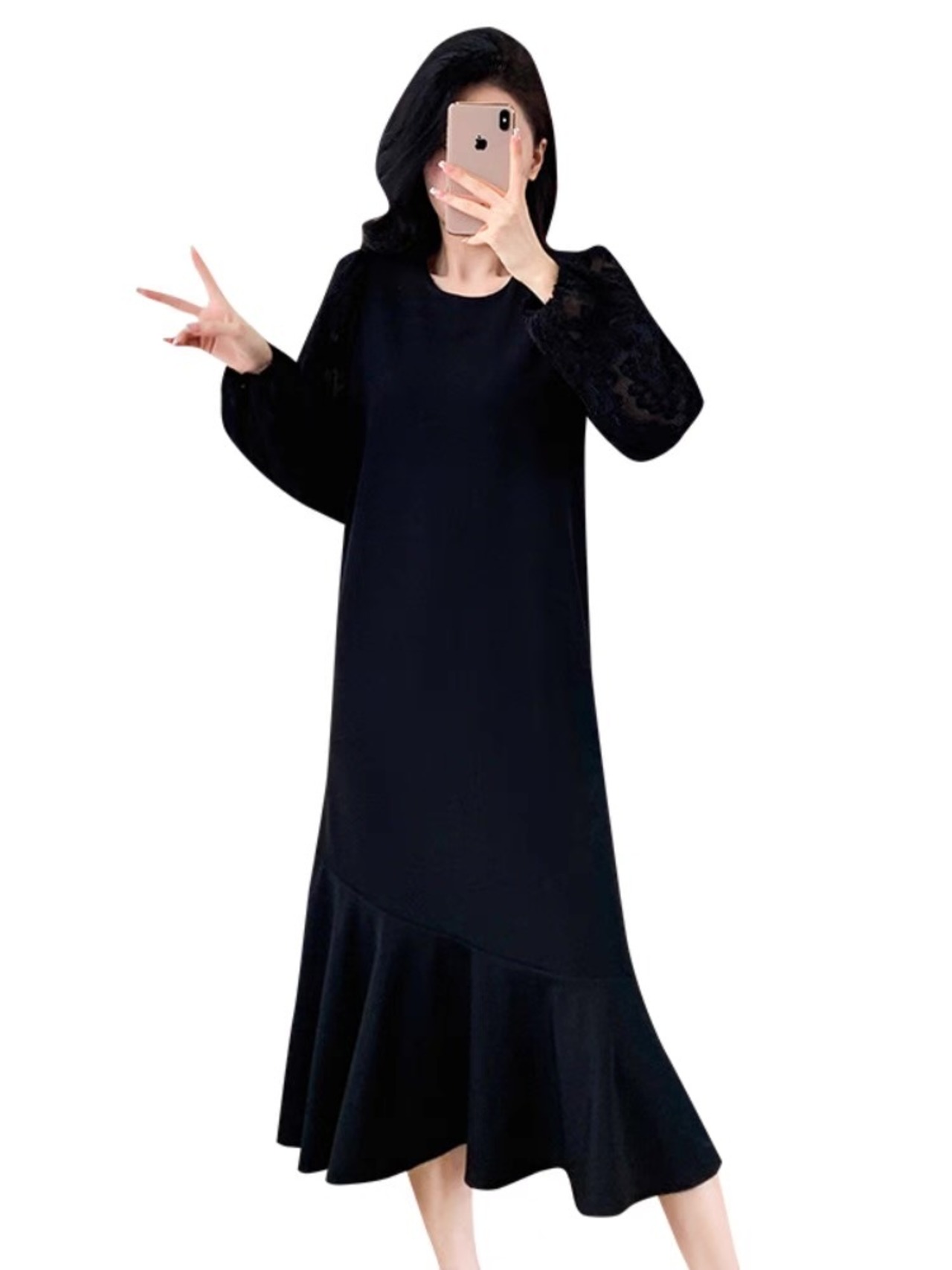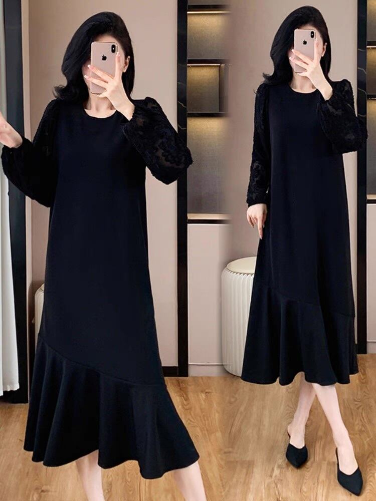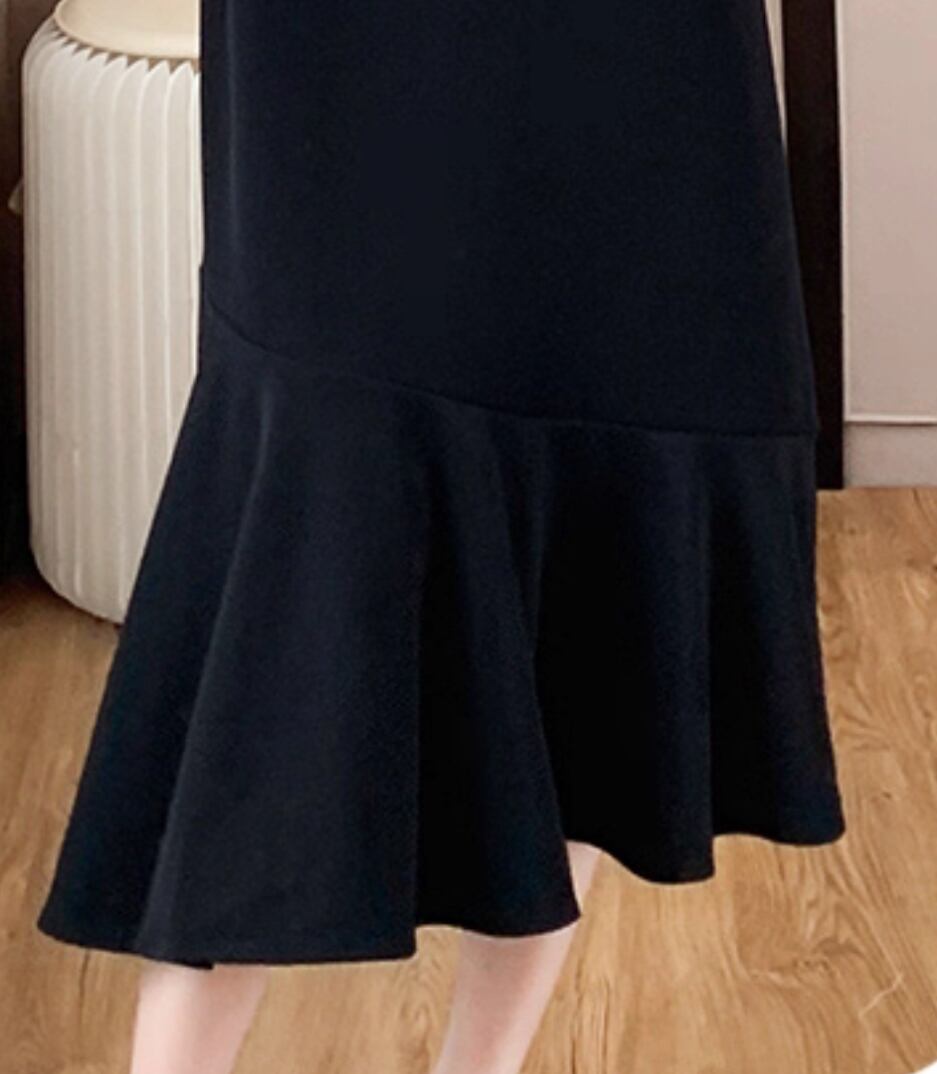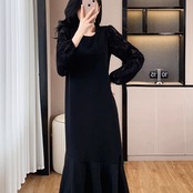 シンプルなブラックワンピース。冠婚葬祭など、しっかりしたシーンにも最適。もちろん普段着やデートにも大活躍な1着になっています。