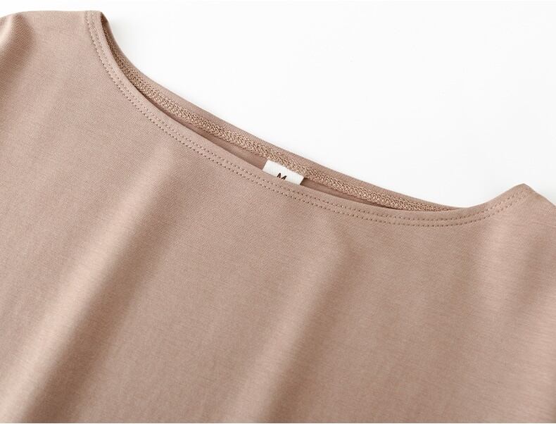 ラウンドネックで、シンプルながらもおしゃれな印象を与える一着。