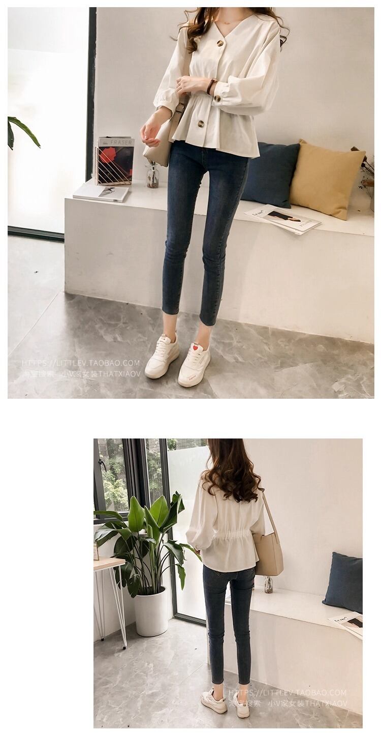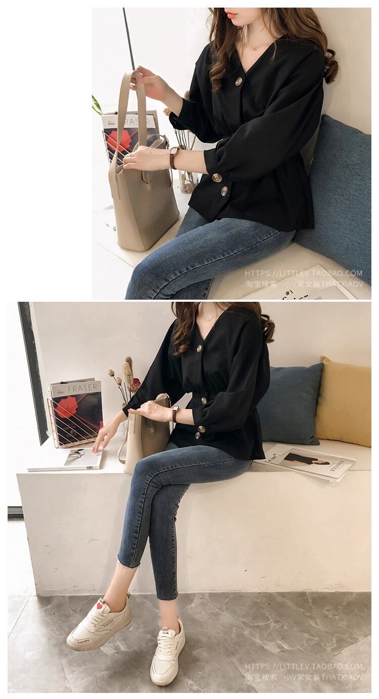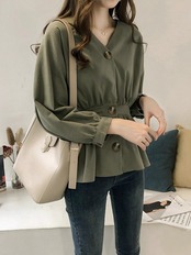 一枚でサマになる、女性らしいデザインのシャツブラウスです。ノーカラーのVネックとフリルディティールが、シンプルながらもおしゃれな印象を与えます。ボリューム袖は、さりげなくトレンド感を演出し、どんなシーンでも活躍すること間違いなしです。ウエストマークのペプラムデザインが、すっきりとしたシルエットを作り出します。
