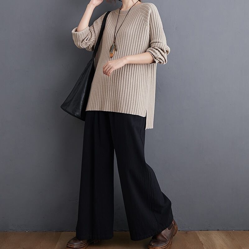 レディース ニット セーター プルオーバー 長袖 ラウンドネック スリム フェミニン リブ かわいい 大人可愛い きれいめ シンプル カジュアル 上品 おしゃれ かっこいい こなれ感 ラフ 個性的 抜け感 キュート デート お出かけ 旅行 レストラン 女子会 休日 ショッピング コンサート ライブ 合コン コンパ カフェ 韓国 オルチャン 楽ちん 普段使い 着回し モテ トレンド 流行 インスタ映え 定番 ゆったり フリーサイズ ブラック ブラウン グレー イエロー オフホワイト 大人カラー 秋カラー | SPARKJOY レディースファッション