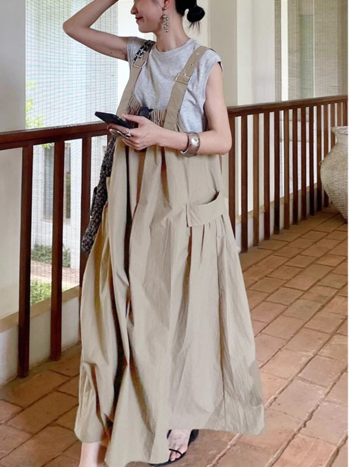 軽やかなデザインのサロペットオールインワンが登場!ノースリーブとスクエアネックのシンプルでありながらおしゃれなスタイル。フレアスカートが優雅な動きを演出し、春夏のデイリーファッションにぴったりです。カジュアルでありながら、抜け感のあるこなれた雰囲気を醸し出します。マタニティやママにも嬉しい着心地で、旅行やリゾート、ビーチでのコーディネートにも最適です!