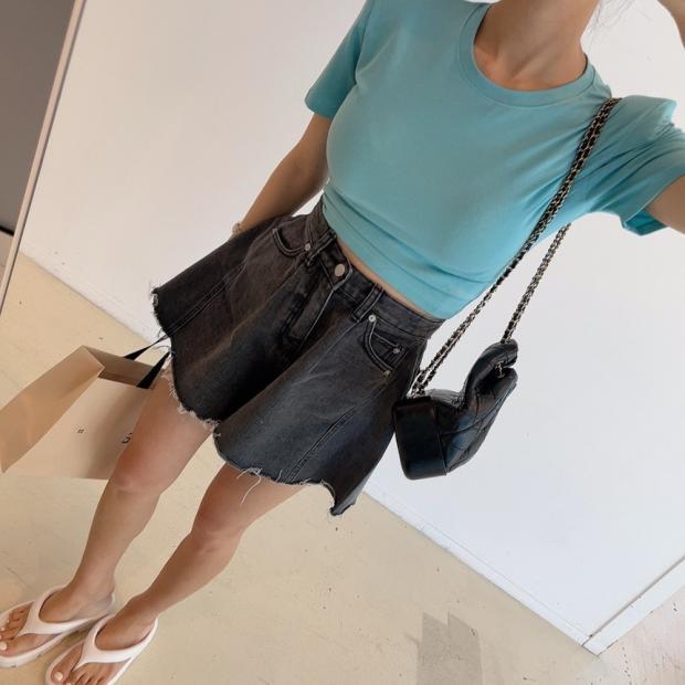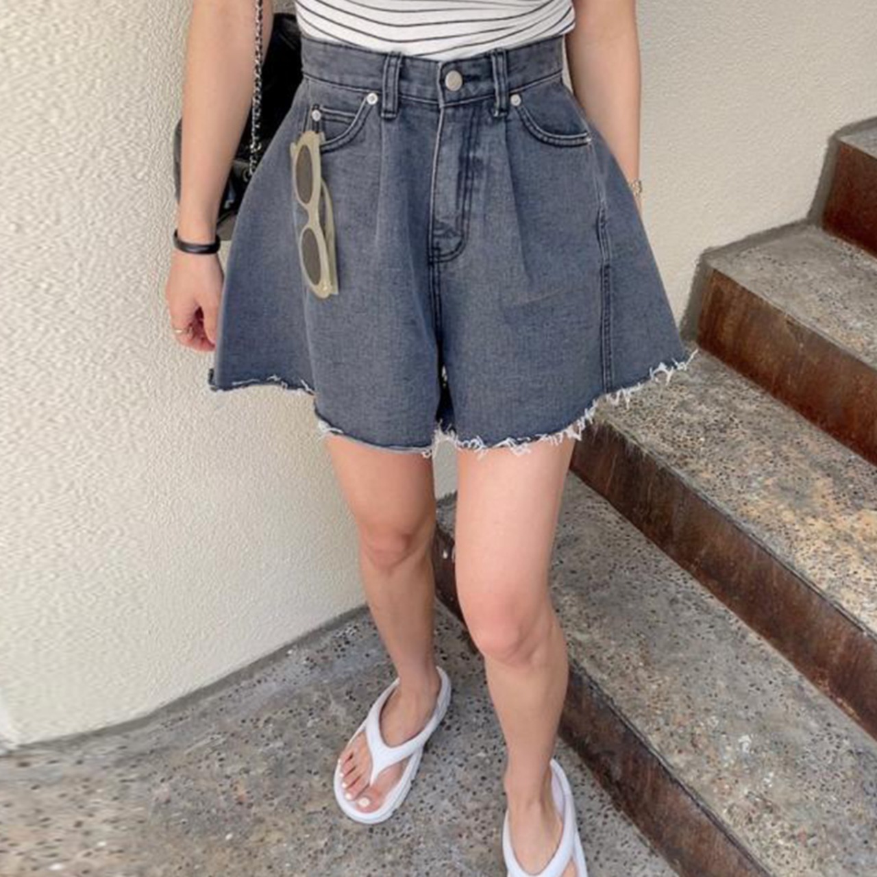 デニム ショートパンツ ハイウエスト ワンボタン フレア ポケット ワイドレッグ ルーズ レディース パンツ ボトムス ミニ ショート スリム ストリート かわいい シンプル カジュアル おしゃれ かっこいい こなれ感 ラフ マニッシュ ガーリー 個性的 抜け感 学生風 ベーシック アメリカン アクティブ ナチュラル デート お出かけ お泊まり アウトドア キャンプ 旅行 ビーチ 女子会 休日 ライブ 韓国 オルチャン 美脚 脚長 普段使い 着回し 流行 インスタ映え 定番 S M L ブラック ブルー | SPARKJOY レディースファッション
