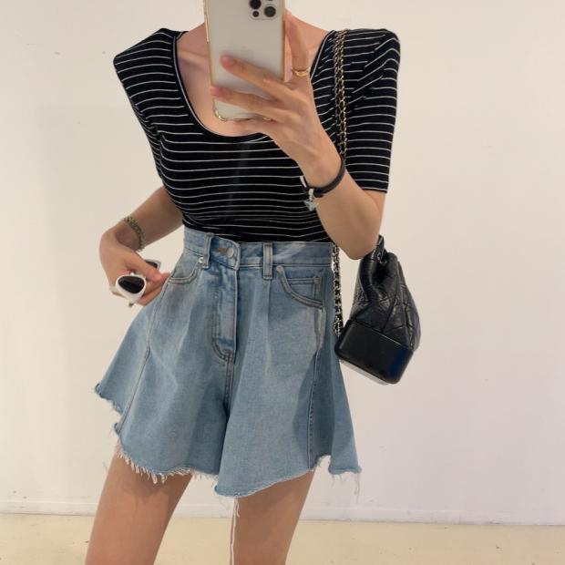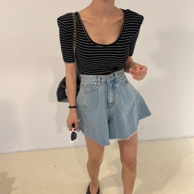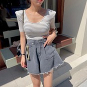 トレンド感満載のハイウエストデザインデニムショートパンツ♡♡