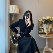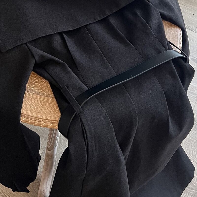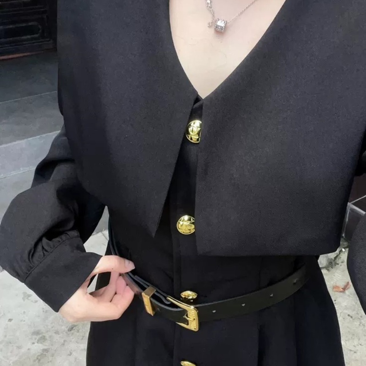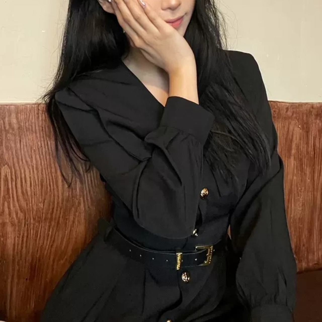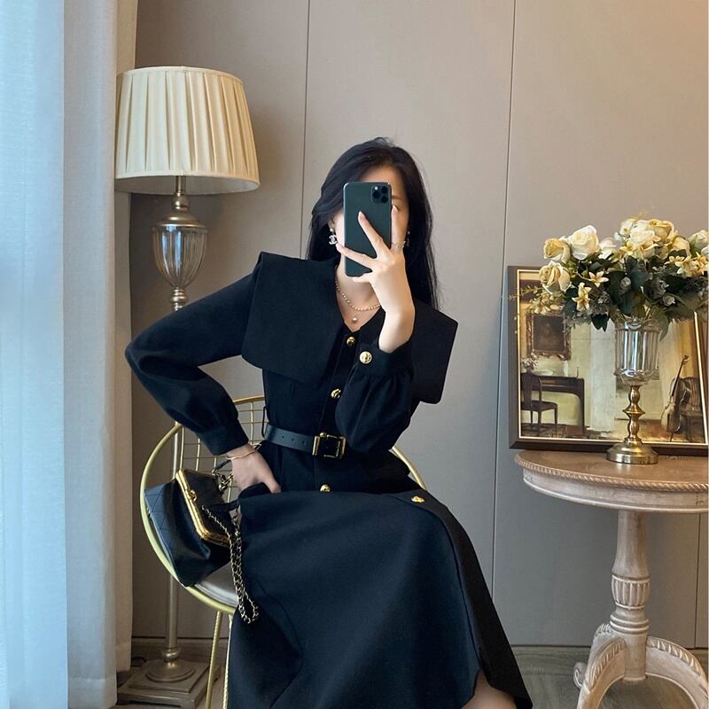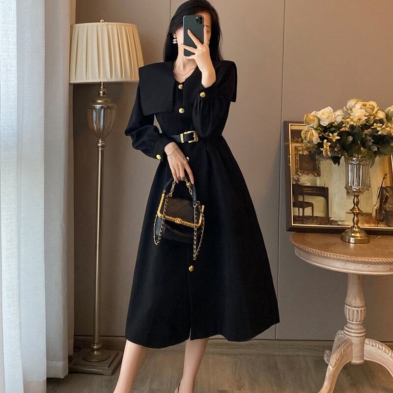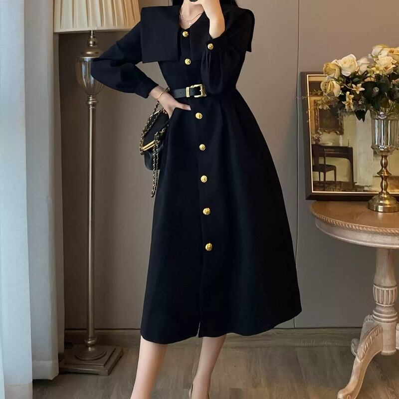 ドレスワンピ ベルト レディース ワンピース フレア 膝下 ミモレ 長袖 襟付き スリム 細身 Aライン ポケット 前開き ボタン ヴィンテージ 大人可愛い きれいめ 上品 おしゃれ かっこいい レトロ クール モード系 エレガント モダン 主役級 存在感 とろみ感 かっちり 都会的 ラグジュアリー オフィス ビジネス OL 通勤 デート お出かけ パーティー イベント 旅行 女子会 海外 韓国 オルチャン 美脚 脚長 普段使い 着回し モテ トレンド 流行 インスタ映え S M L XL ブラック | SPARKJOY レディースファッション
