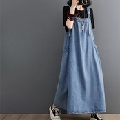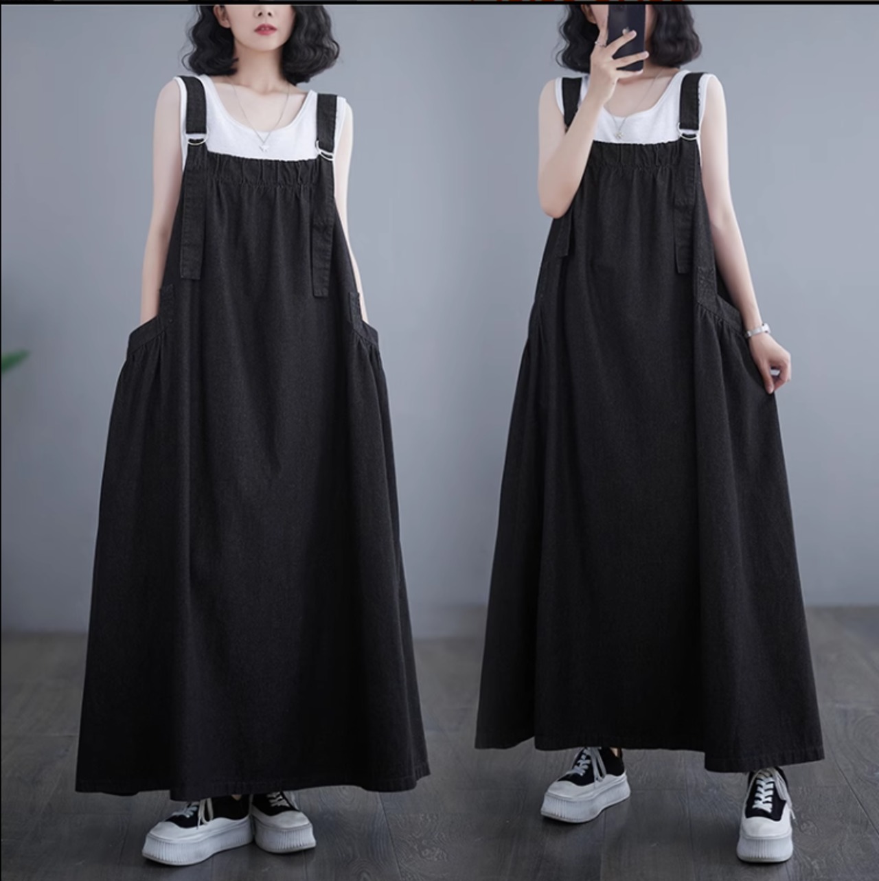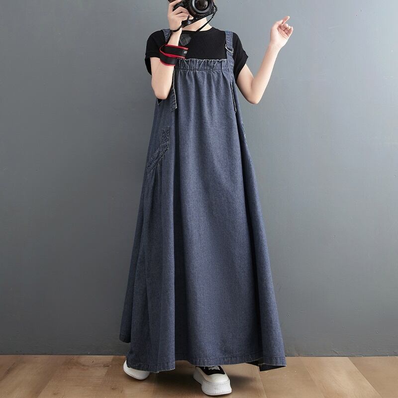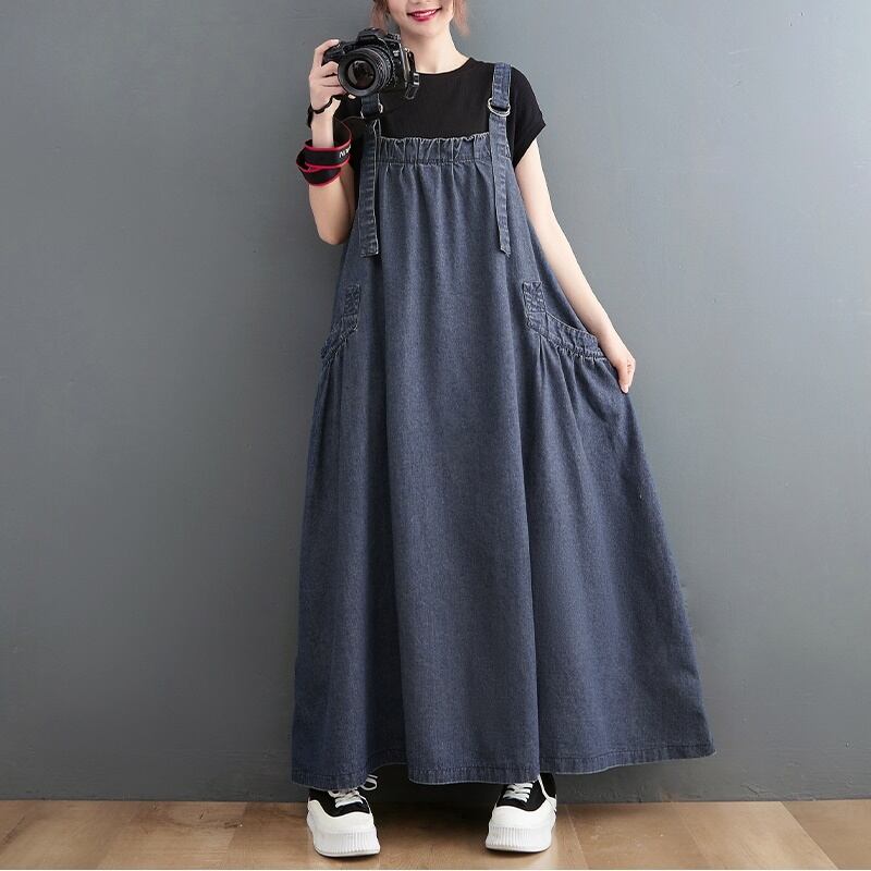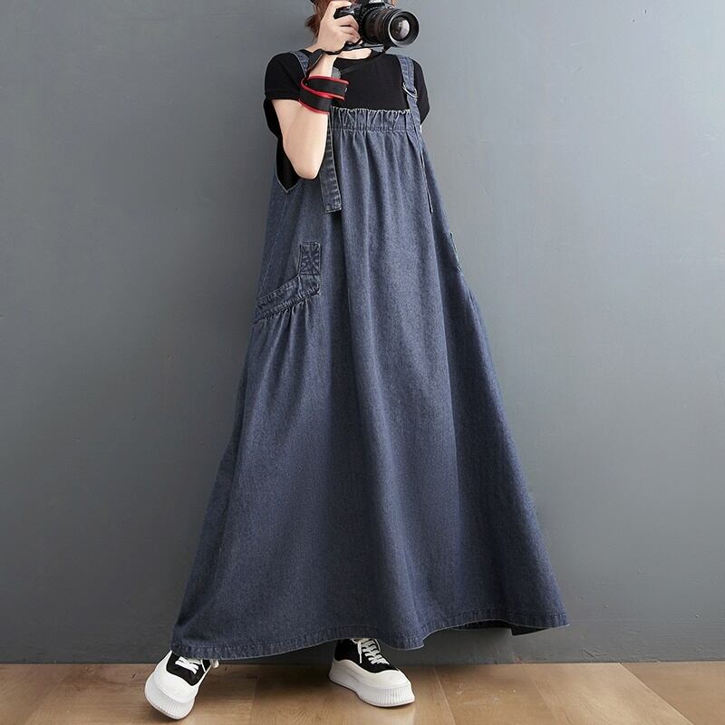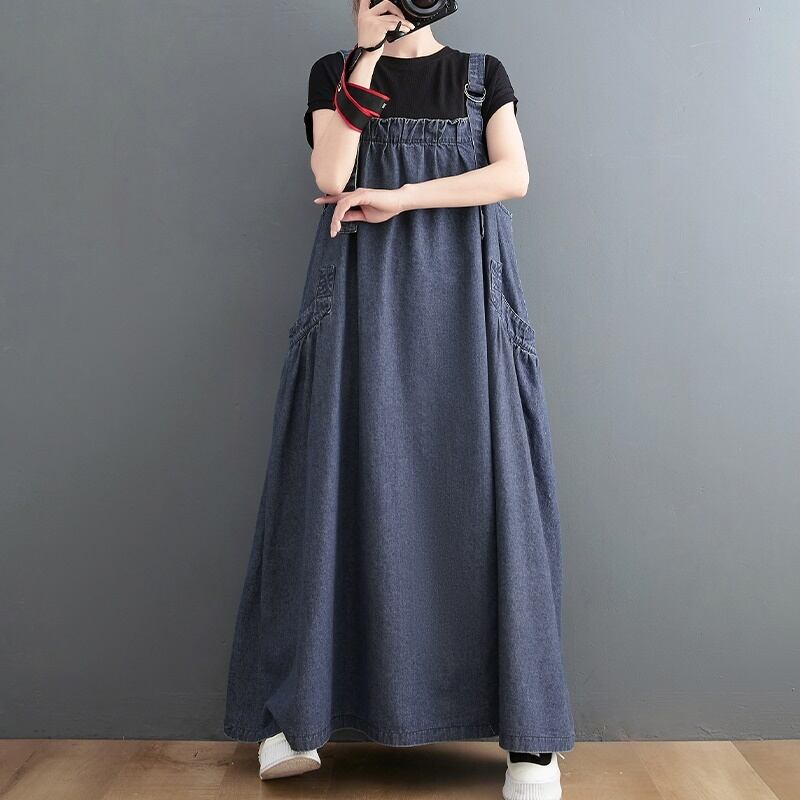 ジャンパースカート サスペンダー デニム プラスサイズ ロング丈 ポケット レディース ワンピース ブルーデニム カラーデニム かわいい 大人可愛い シンプル カジュアル おしゃれ レトロ こなれ感 ラフ ガーリー ルーズ 個性的 無地 デート お出かけ お泊まり アウトドア 旅行 女子会 休日 バカンス カフェ 韓国 オルチャン コーデ 楽ちん 普段使い 着回し トレンド 流行 インスタ映え 定番 M L XL 2XL ビッグ ゆったり ゆる ブラック ブルー ライトブルー ベーシックカラー 大人カラー | SPARKJOY レディースファッション
