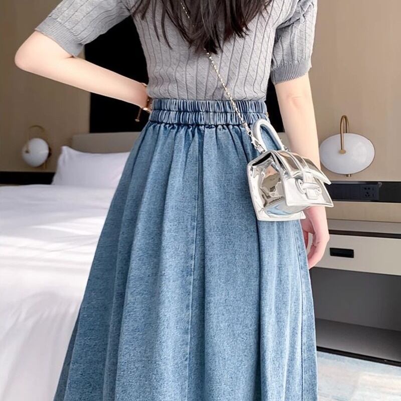 デニムスカート ロング丈 フレア Aライン ハイウエスト レディース スカート フェミニン かわいい 大人可愛い シンプル カジュアル おしゃれ レトロ こなれ感 ラフ ガーリー ルーズ 抜け感 ラブリー キュート 学生風 ベーシック カントリー アクティブ ナチュラル 無地 デート お出かけ お泊まり パーティー 旅行 女子会 休日 バカンス 韓国 オルチャン 美脚 脚長 普段使い 着回し モテ 清楚 トレンド 流行 インスタ映え 定番 S M L XL 2XL 3XL ゆったり ブルー ライトブルー | SPARKJOY レディースファッション