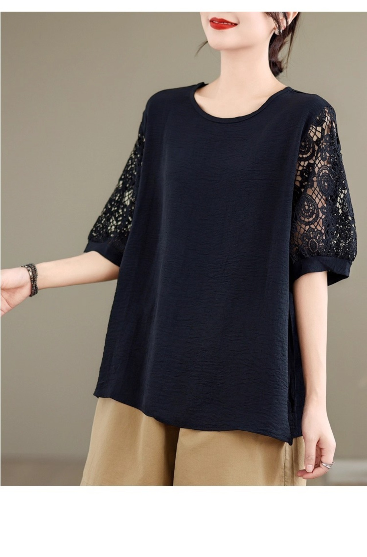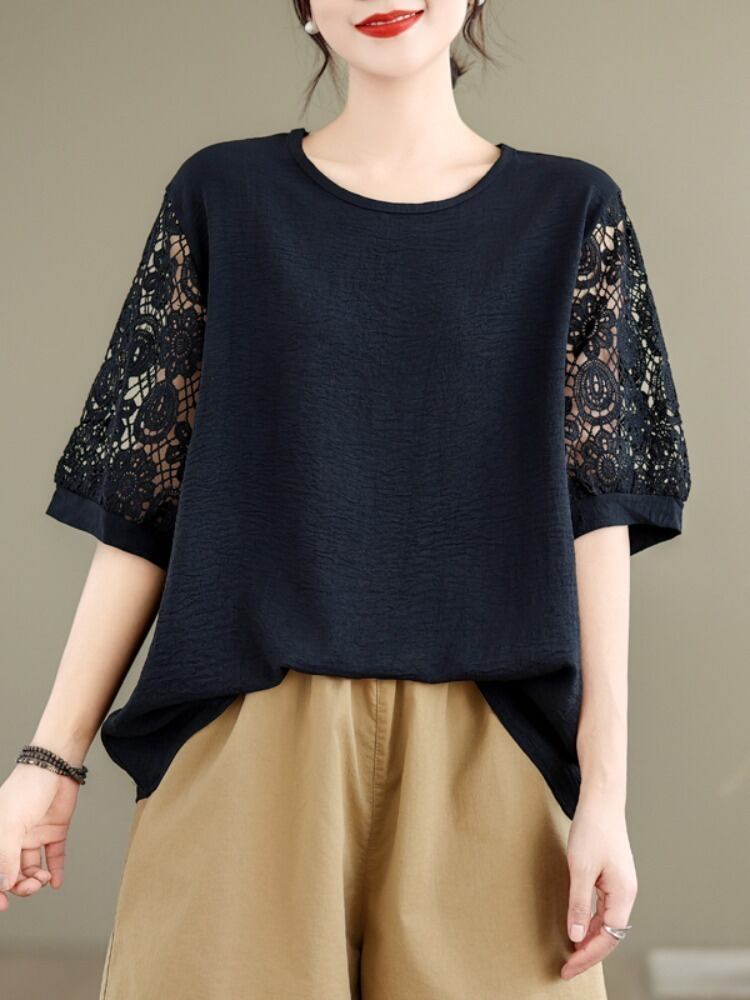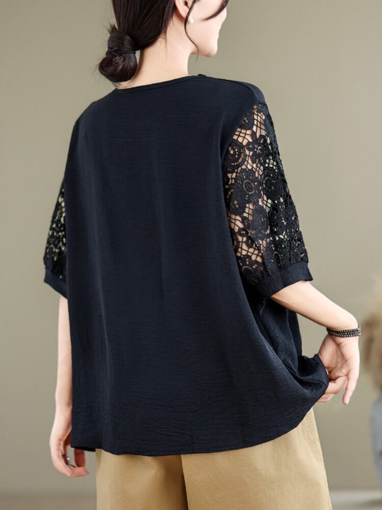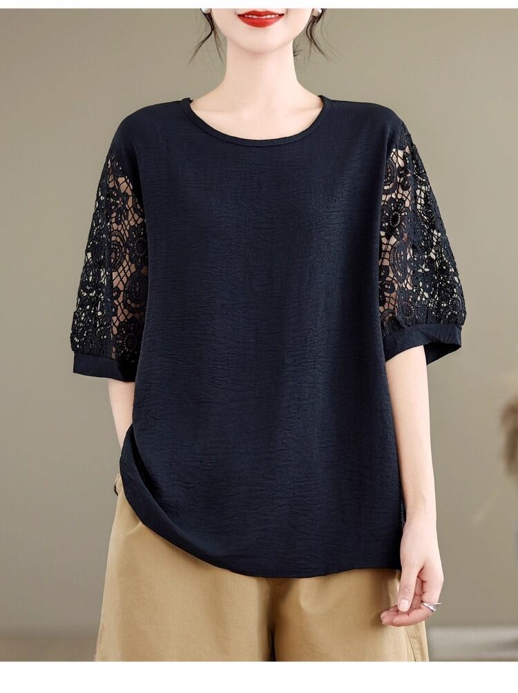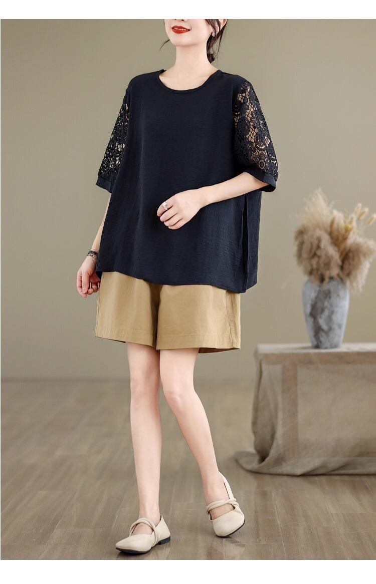 レディース トップス ミモレ 半袖 5分袖 ドルマンスリーブ ラウンドネック ワイド ストレート フェミニン レース 刺繍 編み上げ レースアップ 透け感 コンサバ ドッキング 大人可愛い きれいめ 上品 レトロ こなれ感 マニッシュ ガーリー モード系 抜け感 都会的 クラシカル ベーシック 無地 花柄 フラワー 春 夏 授業参観 会議 MTG プレゼン ママ マタニティ オフィス ビジネス OL 通勤 旅行 女子会 休日 楽ちん 体型カバー 普段使い 着回し 清楚 ゆったり ゆる フリーサイズ 黒 | SPARKJOY レディースファッション