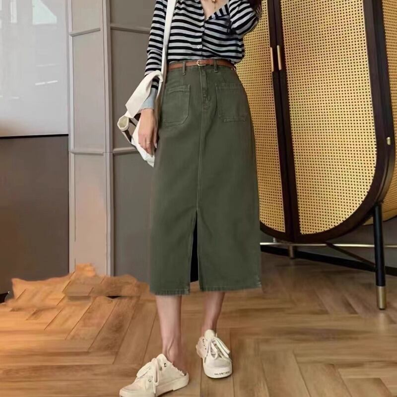 レディース スカート ボトムス タイトスカート デニムスカート 膝下 ミモレ クロップド丈 セミフレア タイト スリム ストリート スリット ヴィンテージ アメカジ ウォッシュ デニム カラーデニム かわいい 大人可愛い シンプル カジュアル おしゃれ かっこいい レトロ こなれ感 ラフ マニッシュ ボーイッシュ スポーティー ガーリー 抜け感 ヴィンテージ 都会的 カレッジ風 ベーシック アメリカン ナチュラル 無地 春 夏 秋 ロングシーズン デート お出かけ イベント 旅行 公園 女子会 休日 ショ | SPARKJOY レディースファッション