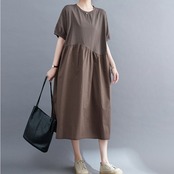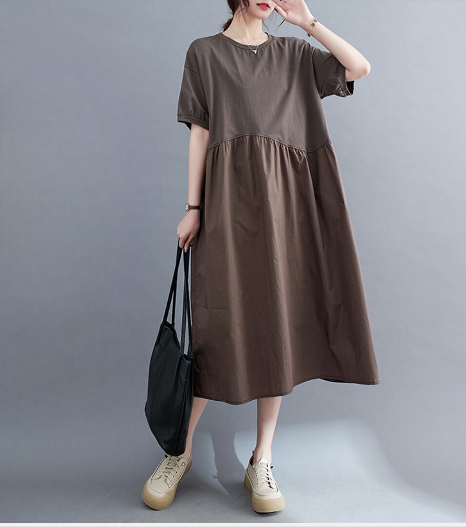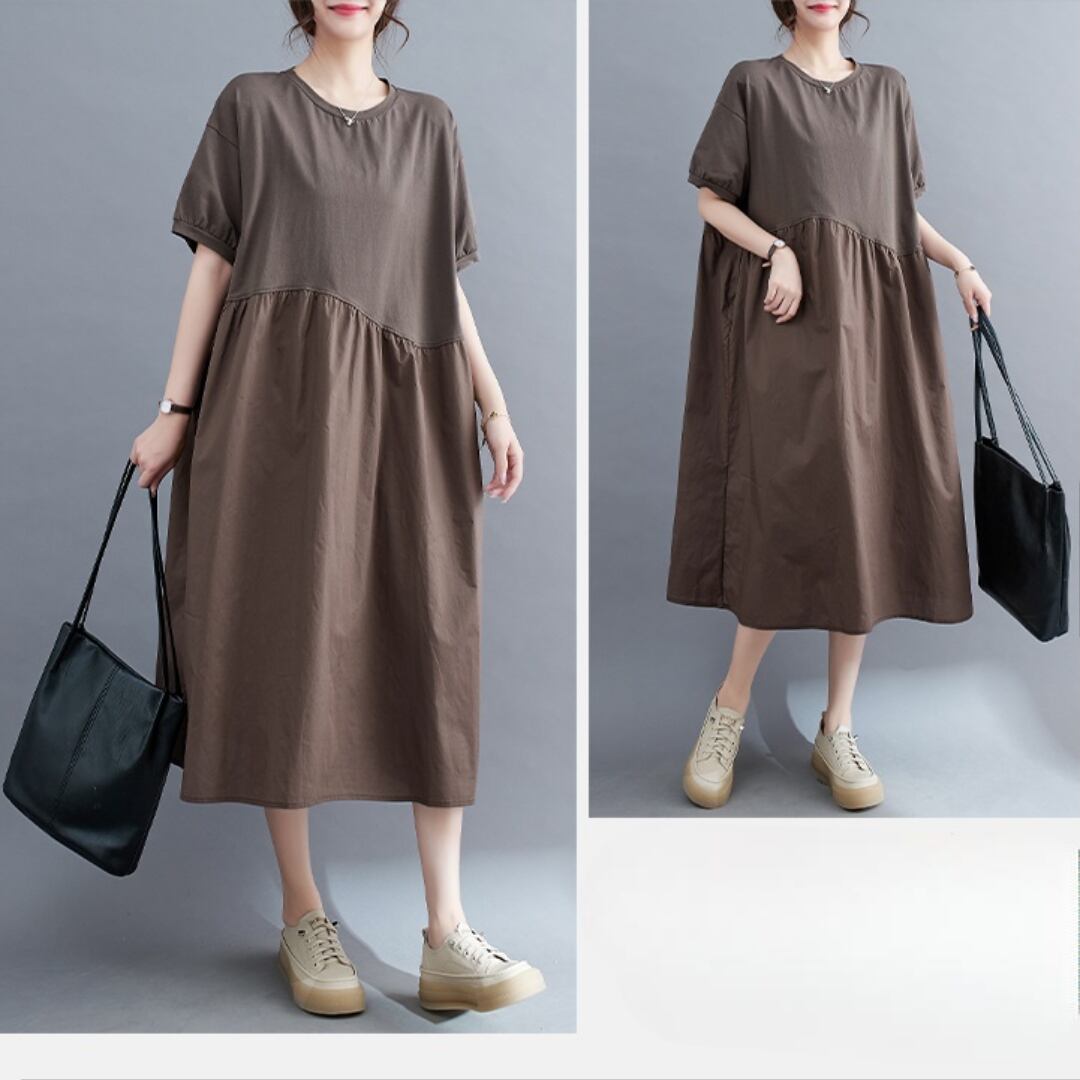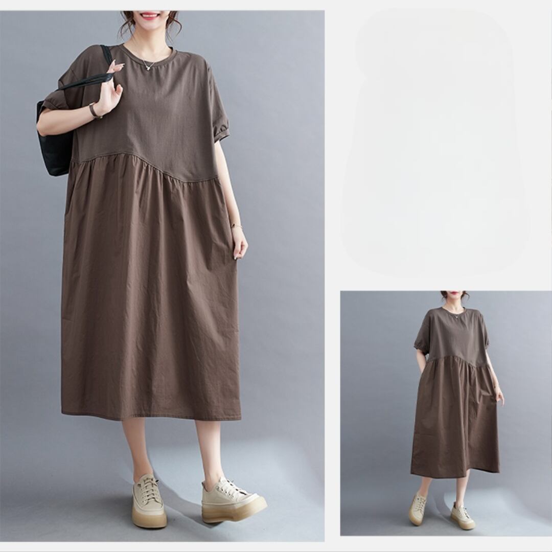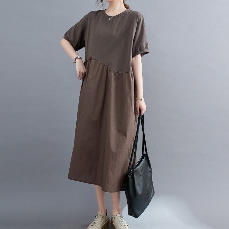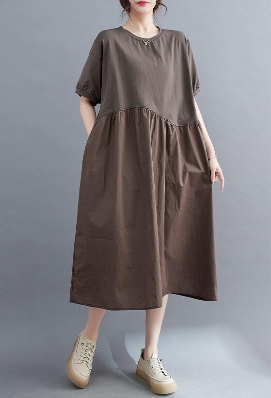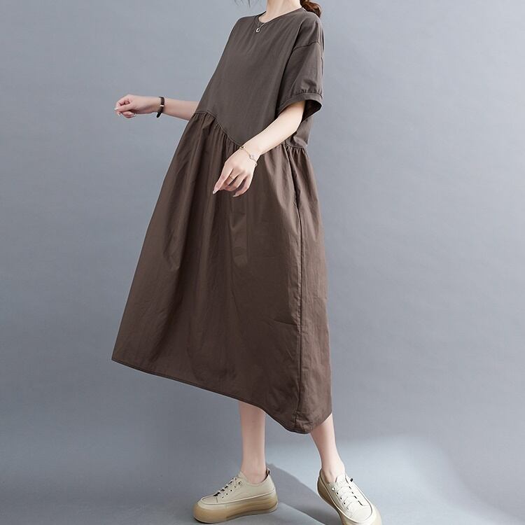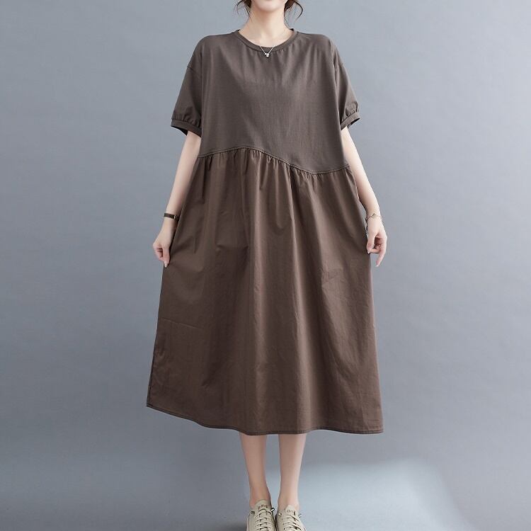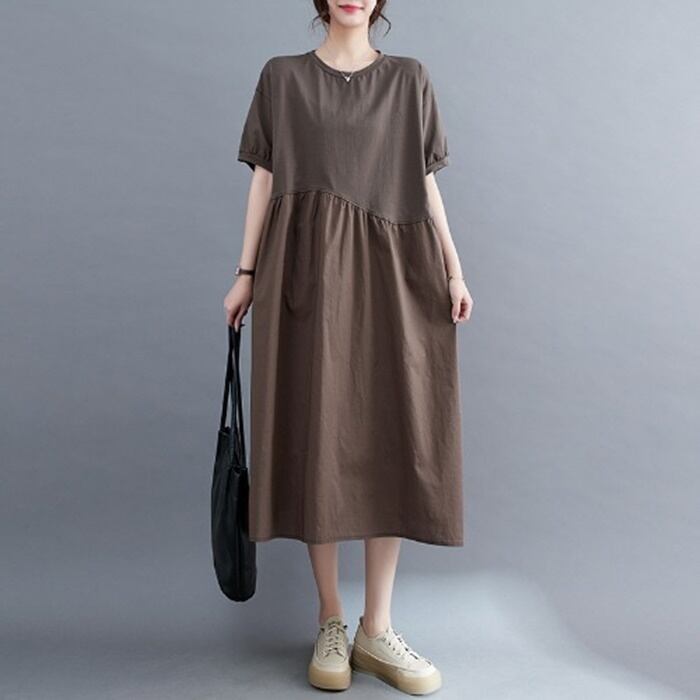 レディース ワンピース フレア 膝下 ミモレ 7分丈 半袖 ラウンドネック フェミニン かわいい 大人可愛い きれいめ シンプル カジュアル おしゃれ こなれ感 ラフ ルーズ 個性的 抜け感 キュート ベーシック アクティブ ナチュラル ママ マタニティ デート お出かけ お泊まり 旅行 女子会 休日 ショッピング コンサート ライブ アースカラー モノトーン 韓国 オルチャン コーデ 楽ちん 体型カバー 美脚 脚長 普段使い 着回し モテ 清楚 トレンド 流行 インスタ映え 定番 M L XL ブラウン | SPARKJOY レディースファッション
