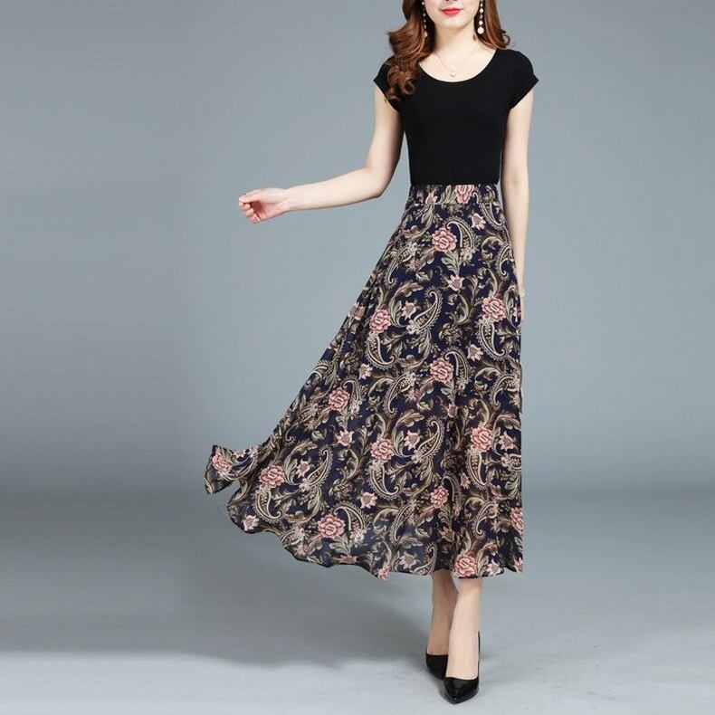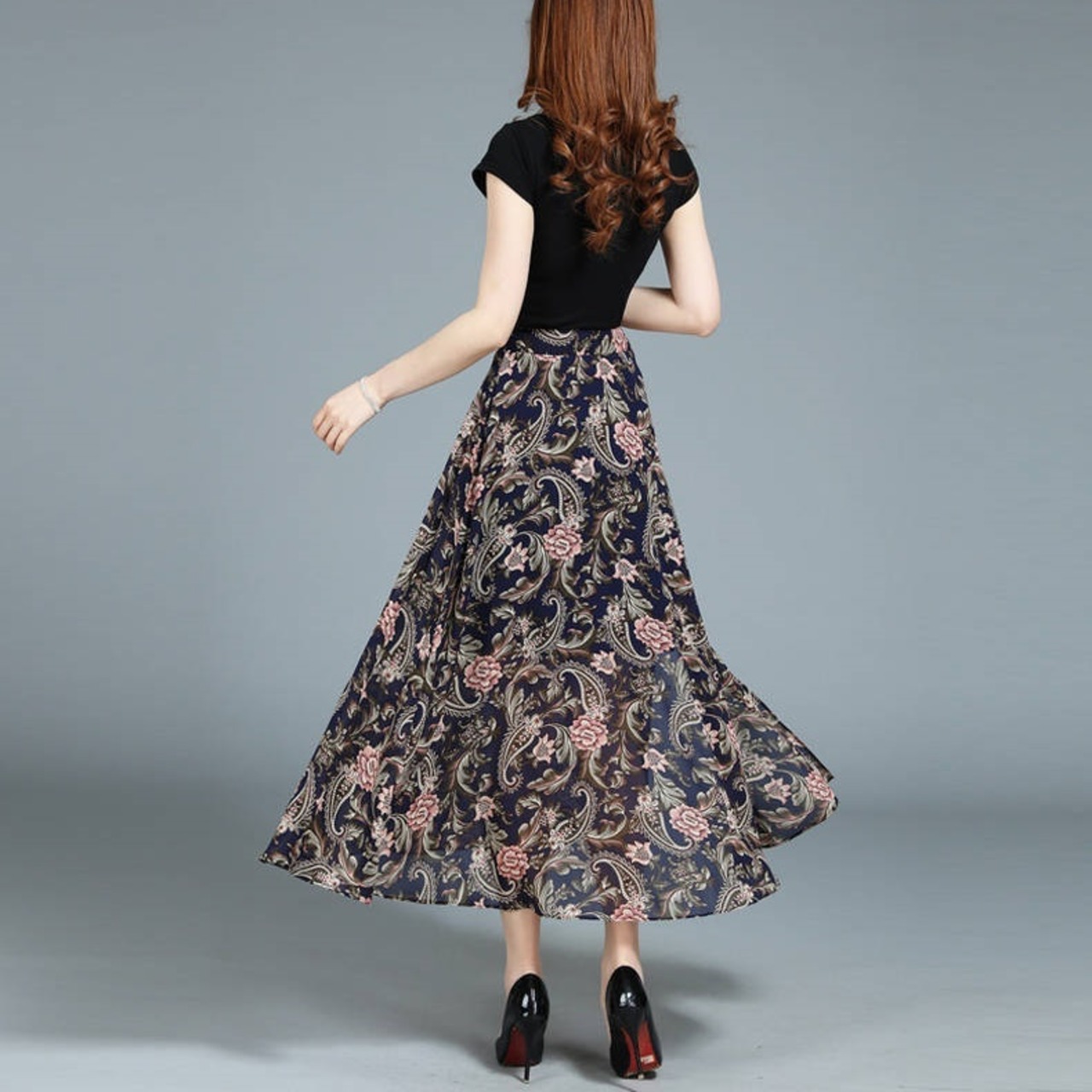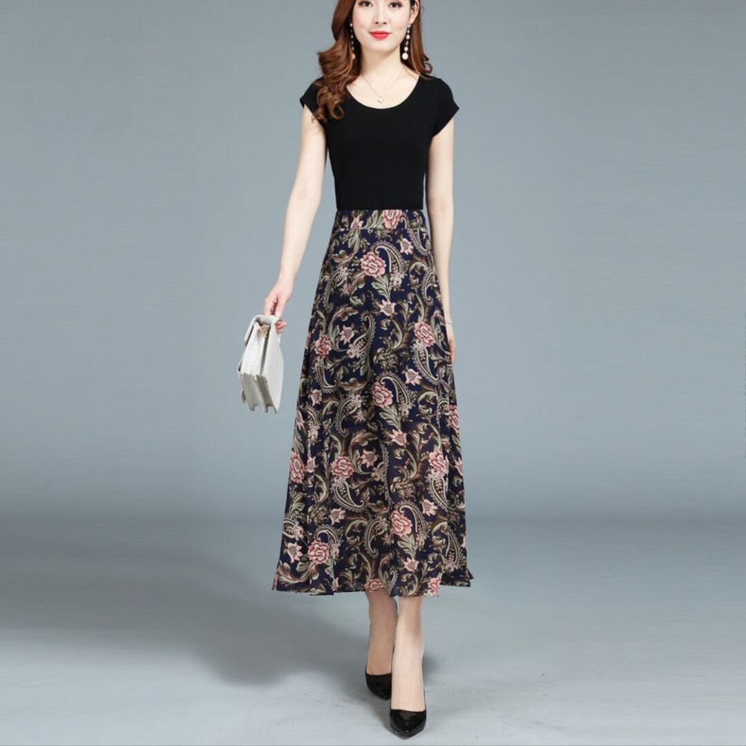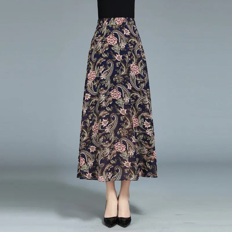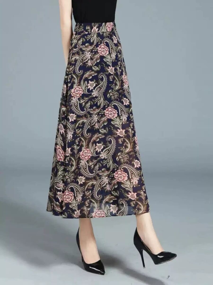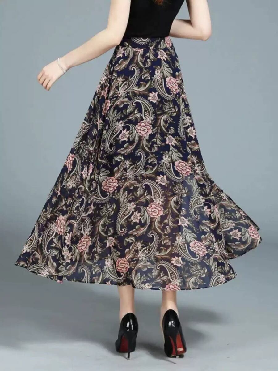 ミドル丈スカート シフォン ハイウエスト ボヘミアン ペイズリー スリム レディース スカート ボトムス フレア ミモレ 細身 大人可愛い きれいめ 上品 おしゃれ アジアン エスニック こなれ感 個性的 クール 抜け感 都会的 ラグジュアリー ママ OL 通勤 ホテル ショッピング コンサート ライブ 合コン コンパ カフェ 韓国 オルチャン コーデ 楽ちん 体型カバー 美脚 脚長 普段使い 着回し モテ トレンド 流行 インスタ映え 定番 M L XL 2XL 3XL ゆったり ブラック 大人カラー | SPARKJOY レディースファッション