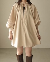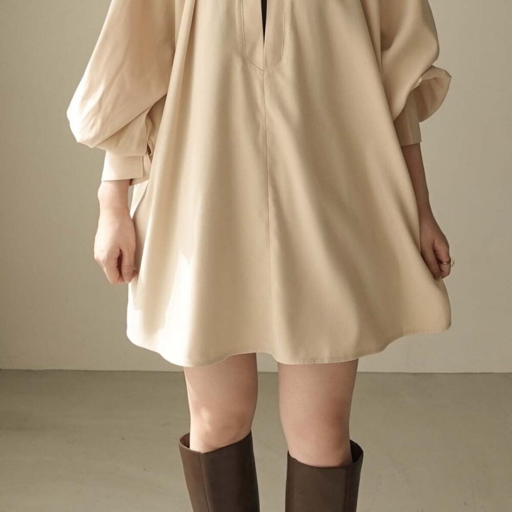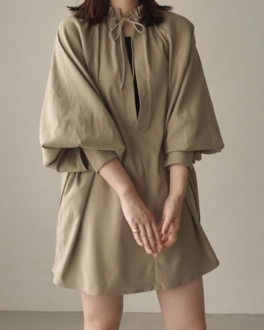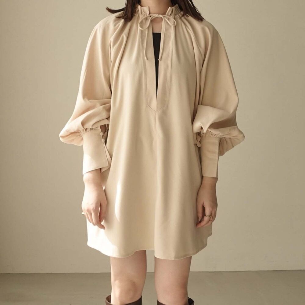 ボリューム袖とスリムなシルエットで、かわいさと大人っぽさを両立した個性的なデザインのミニワンピ♡♡