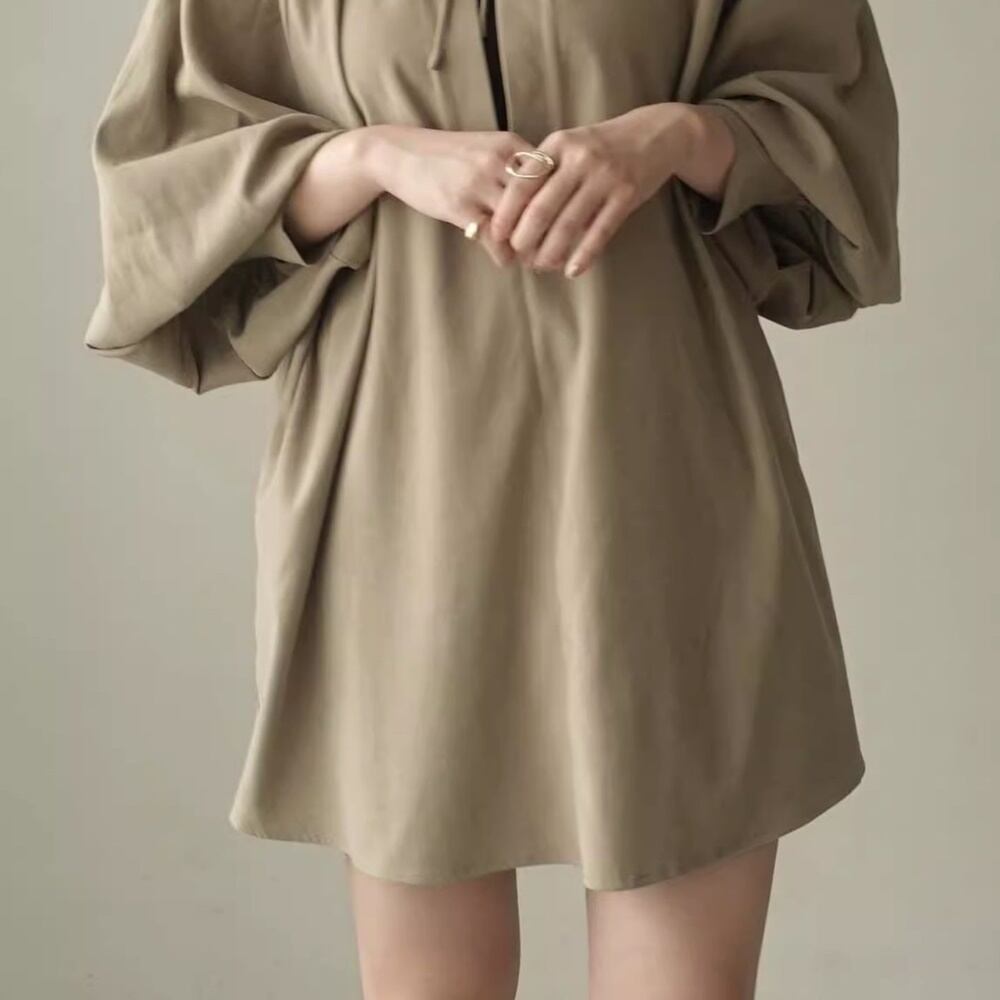 シャツワンピ ミニワンピ レディース ワンピース ミニ ショート 膝上 長袖 ボリューム袖 スリム 細身 かわいい 大人可愛い シンプル カジュアル おしゃれ こなれ感 ラフ 個性的 クール 抜け感 ナチュラル デート お出かけ 旅行 女子会 休日 ショッピング コンサート ライブ 合コン コンパ カフェ モノトーン 韓国 オルチャン コーデ 楽ちん 体型カバー 美脚 脚長 普段使い 着回し トレンド 流行 インスタ映え 定番 ゆったり フリーサイズ ベージュ カーキ ベーシックカラー 秋カラー | SPARKJOY レディースファッション
