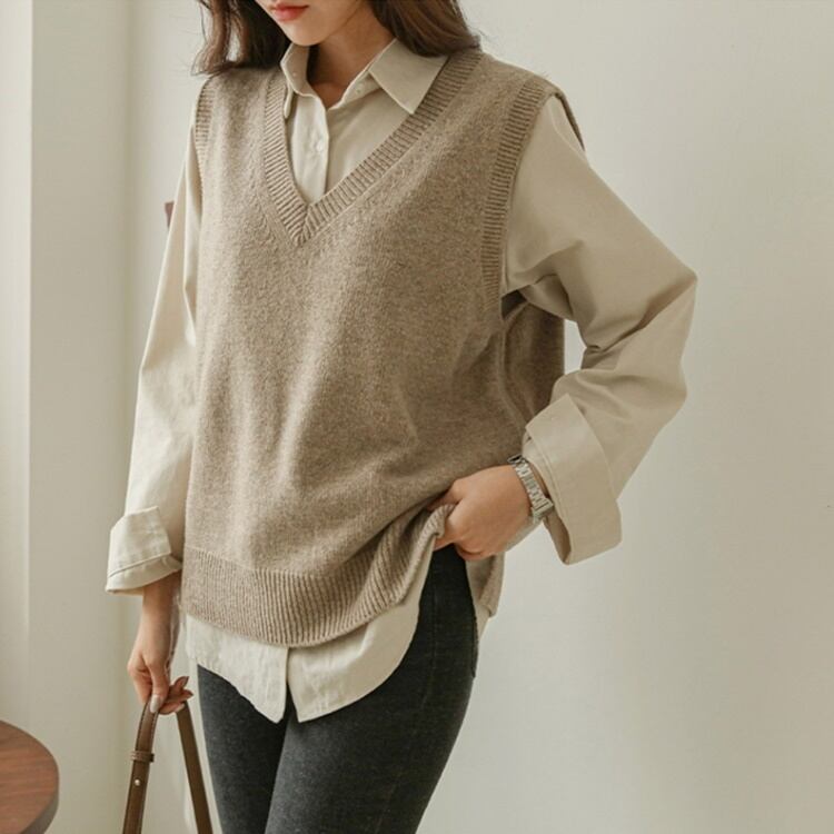 大人可愛いVネックニットベスト☆☆シンプルながらおしゃれさ満点!