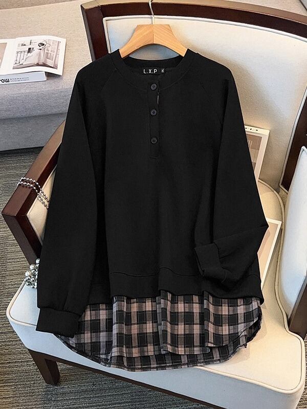 レディース トップス ロンT シャツ カットソー ミモレ 長袖 ラウンドネック 襟なし スリム ストレート 切り替え ドッキング コンサバ ボタン ドッキング 薄手 コットン かわいい 大人可愛い シンプル カジュアル おしゃれ レトロ こなれ感 ラフ マニッシュ モダン ヴィンテージ ゴシック 都会的 クラシカル ベーシック 無地 チェック 春 秋 ロングシーズン 会議 ミーティング プレゼン ママ オフィス ビジネス OL 通勤 旅行 公園 女子会 休日 ショッピング コンサート ライブ カフェ 楽ち | SPARKJOY レディースファッション