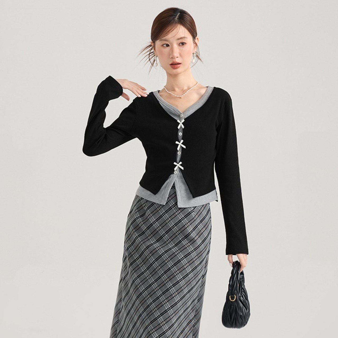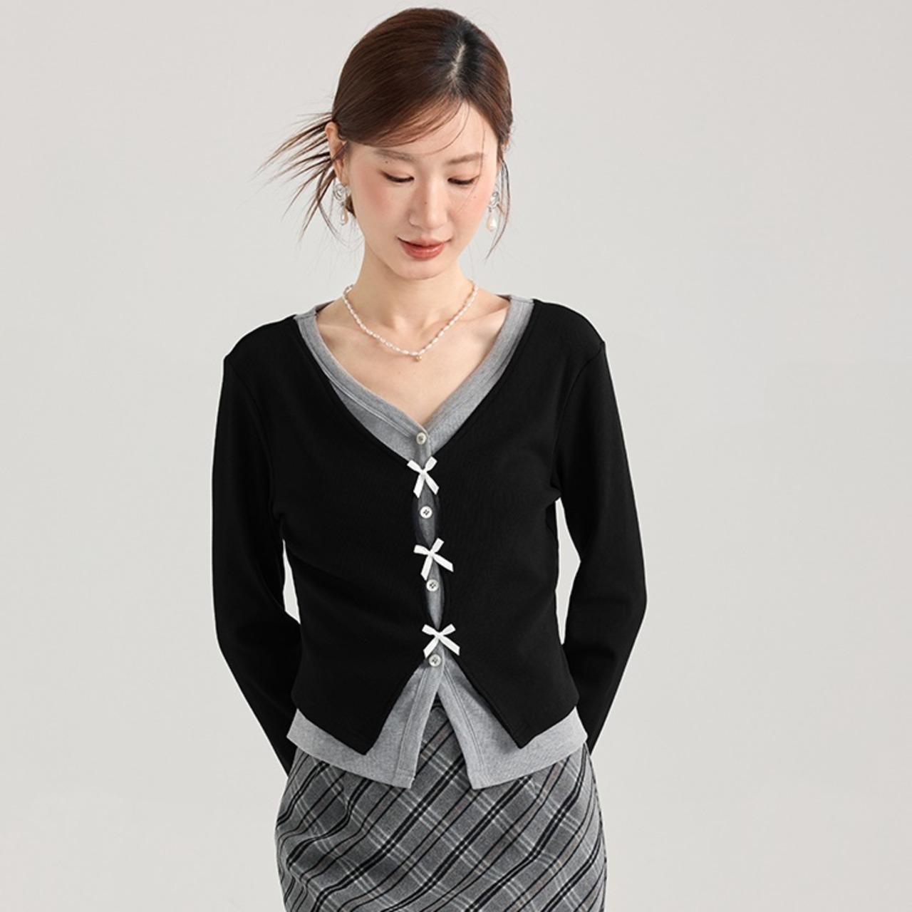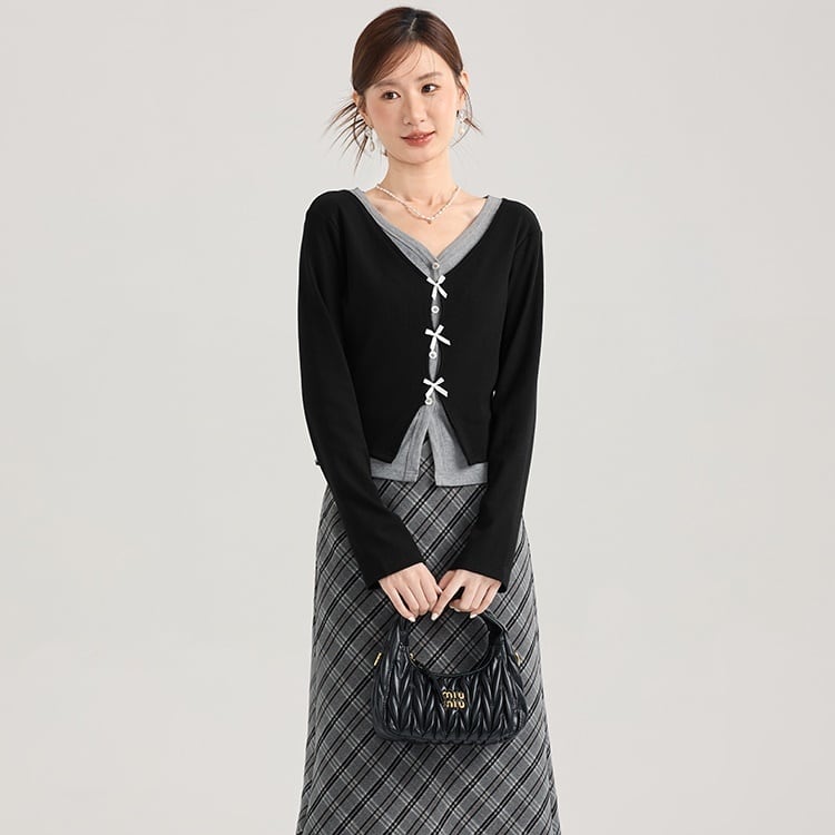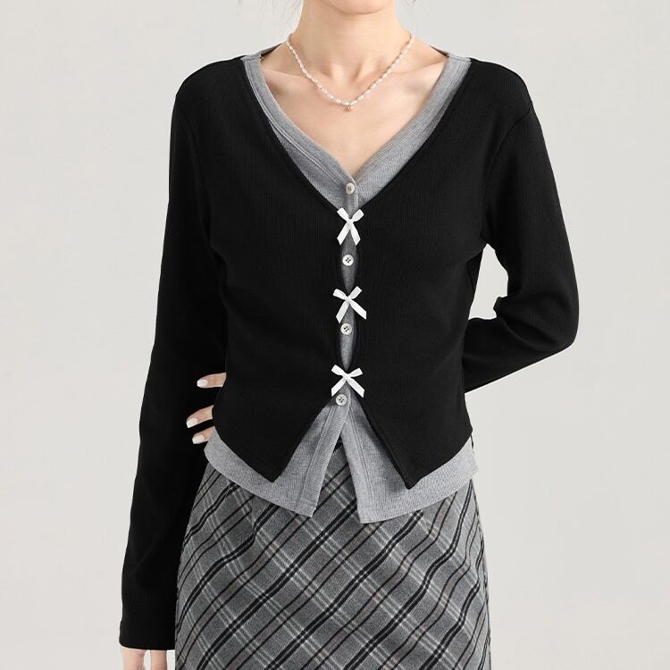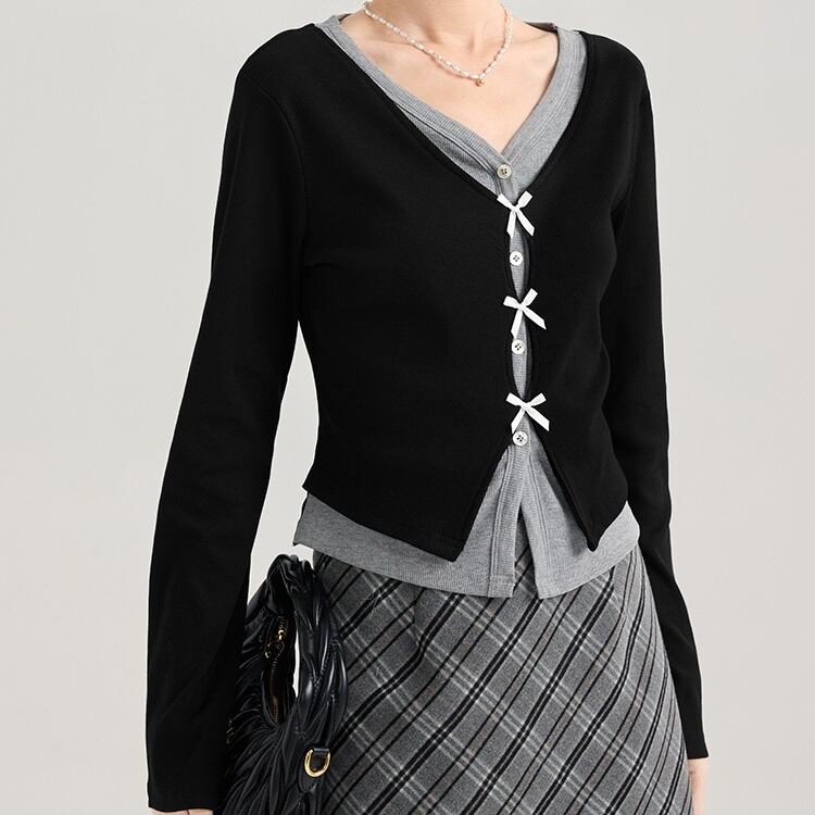 ニット カーディガン レイヤード プラスサイズ レディース トップス 長袖 Vネック スリム 細身 フェミニン リボン 前開き ボタン かわいい 大人可愛い きれいめ シンプル 上品 おしゃれ こなれ感 ガーリー エレガント モダン 抜け感 キュート 都会的 ナチュラル OL 通勤 デート お出かけ 旅行 レストラン 合コン コンパ カフェ 婚活 モノトーン 韓国 オルチャン コーデ 楽ちん 暖かい 普段使い 着回し モテ 清楚 トレンド 流行 インスタ映え 定番 M L XL 2XL 3XL ブラック | SPARKJOY レディースファッション