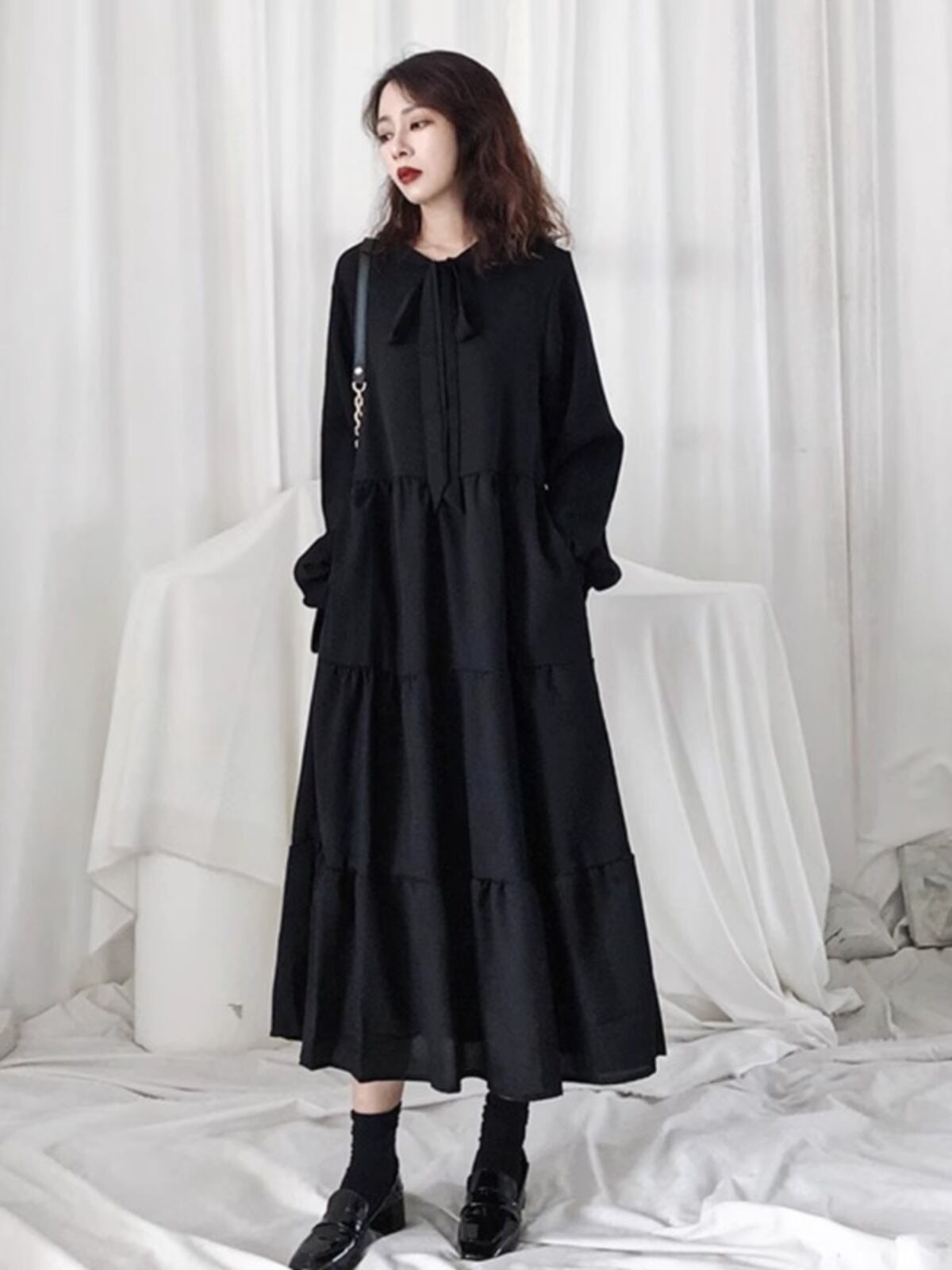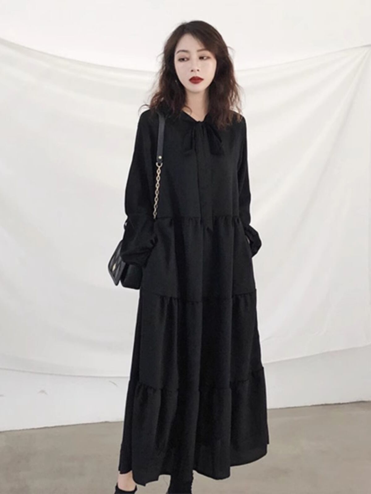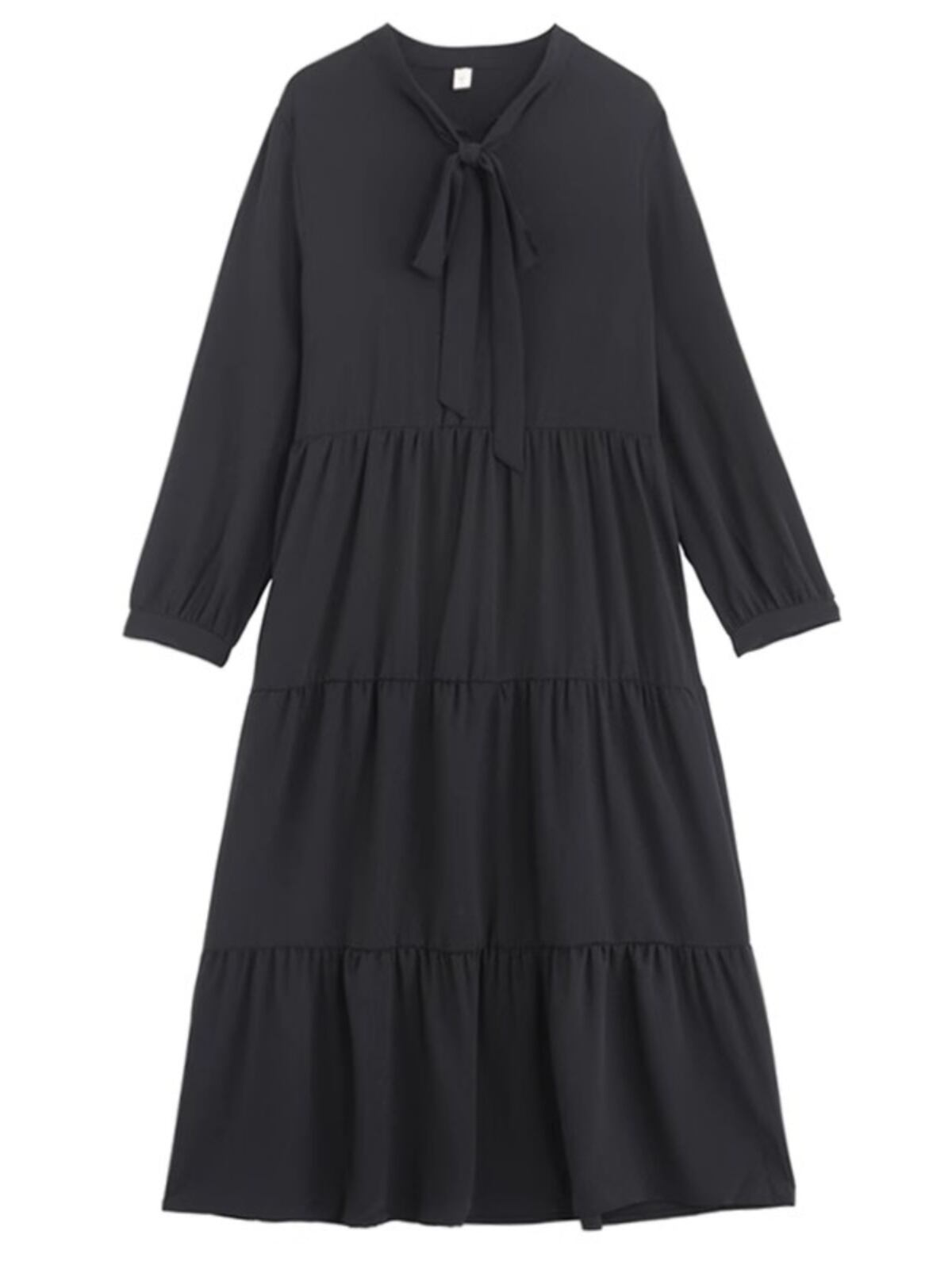 ワンピース ミモレ丈ワンピース 長袖 リボンタイ セミフレア ポケット ミモレ丈 かわいい 大人可愛い きれいめ シンプル 上品 おしゃれ レトロ カジュアル こなれ感 個性的 主役級存在感 抜け感 春 秋 ベーシック ナチュラル クール キュート 無地 女性用 レディース ママ マタニティ OL 通勤 オフィス 学生 通学 デート お出かけ お泊まり 女子会 旅行 休日 カフェ ショッピング コンパ 普段使い デイリー 着回し 重ね着 M L XL 2XL 3XL 4XL トレンド もて 楽ちん | SPARKJOY レディースファッション