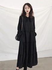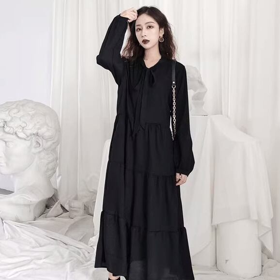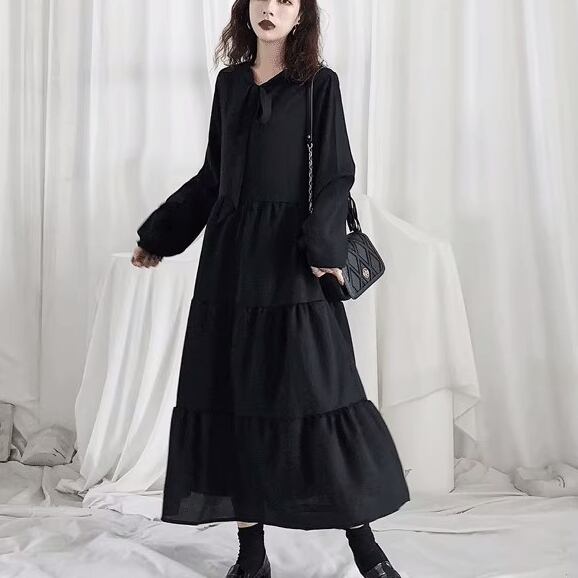 このワンピースは、長袖&リボンタイデザインで上品さと可愛らしさを兼ね備えています。