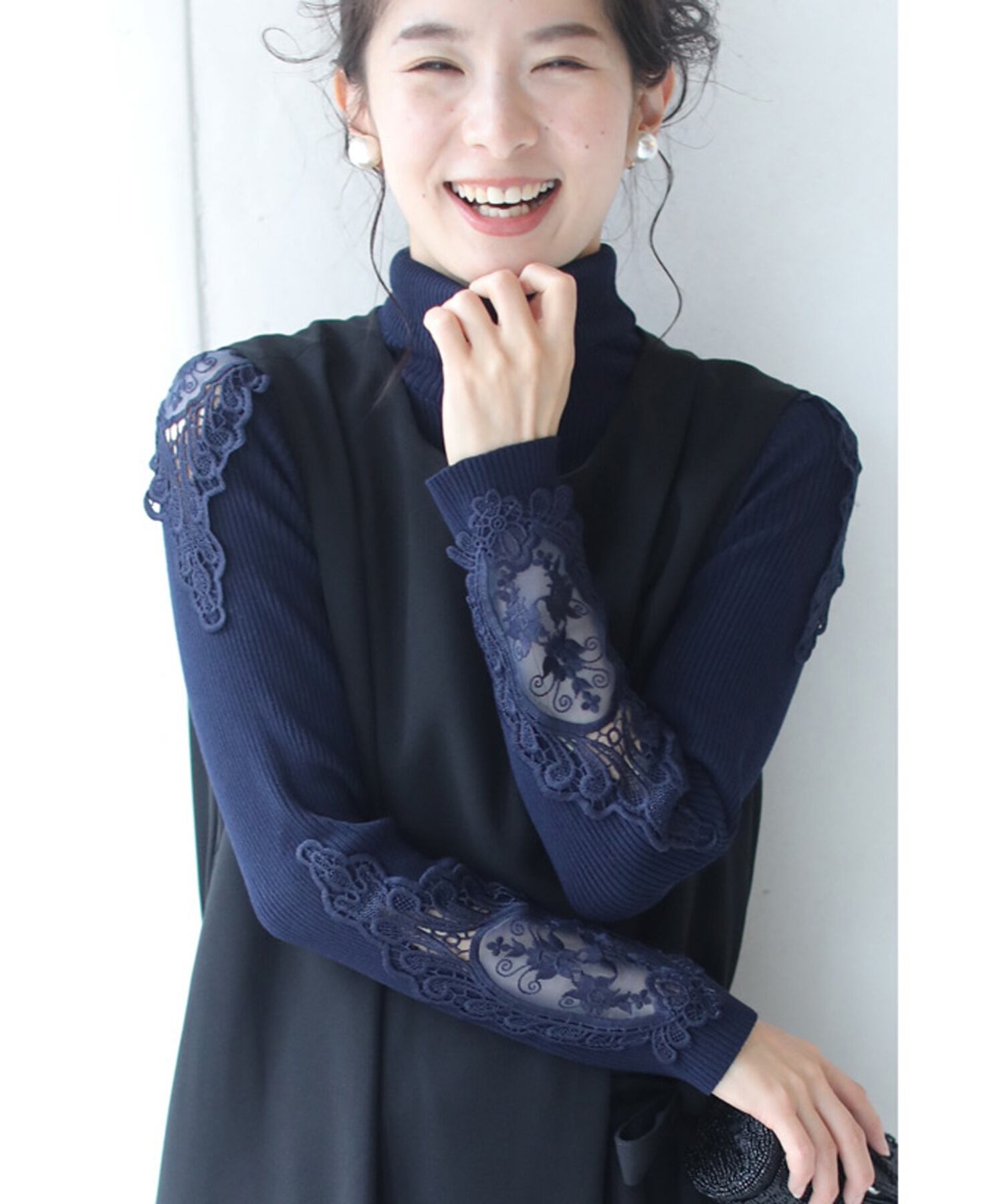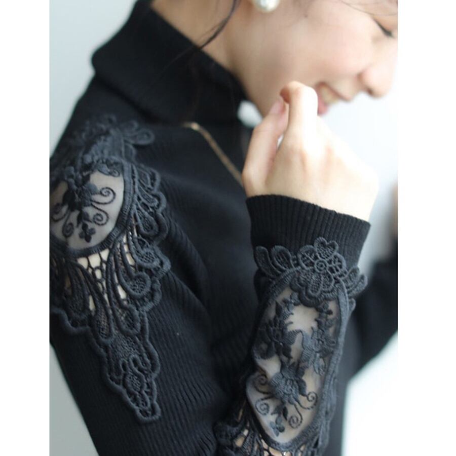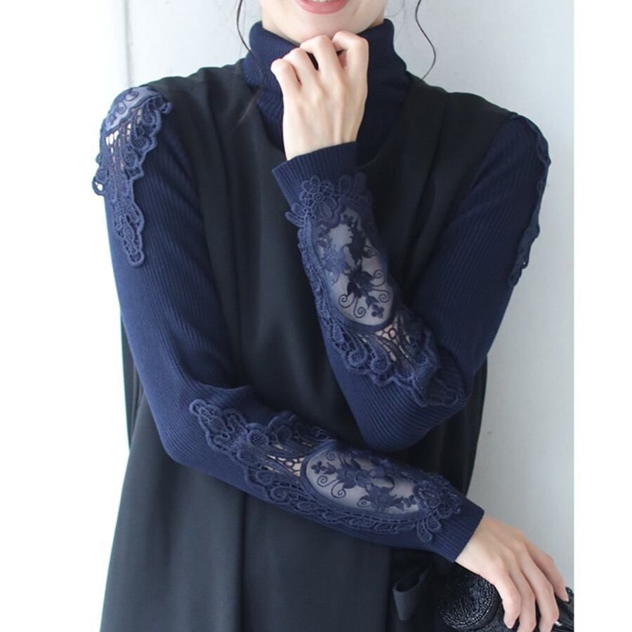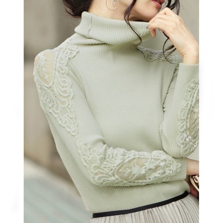 レディース トップス カットソー インナー 長袖 ハイネック スリム 細身 フェミニン レース リブ 透け感 シースルー かわいい 大人可愛い きれいめ 上品 おしゃれ こなれ感 ガーリー クール モダン 抜け感 キュート ナチュラル デート 旅行 女子会 休日 ホテル ガーデン ショッピング コンサート ライブ 合コン コンパ カフェ 婚活 モノトーン 韓国 楽ちん 普段使い 着回し モテ 清楚 インスタ映え フリーサイズ ホワイト ブラック ブルー グリーン ベーシックカラー 大人カラー 秋カラー | SPARKJOY レディースファッション