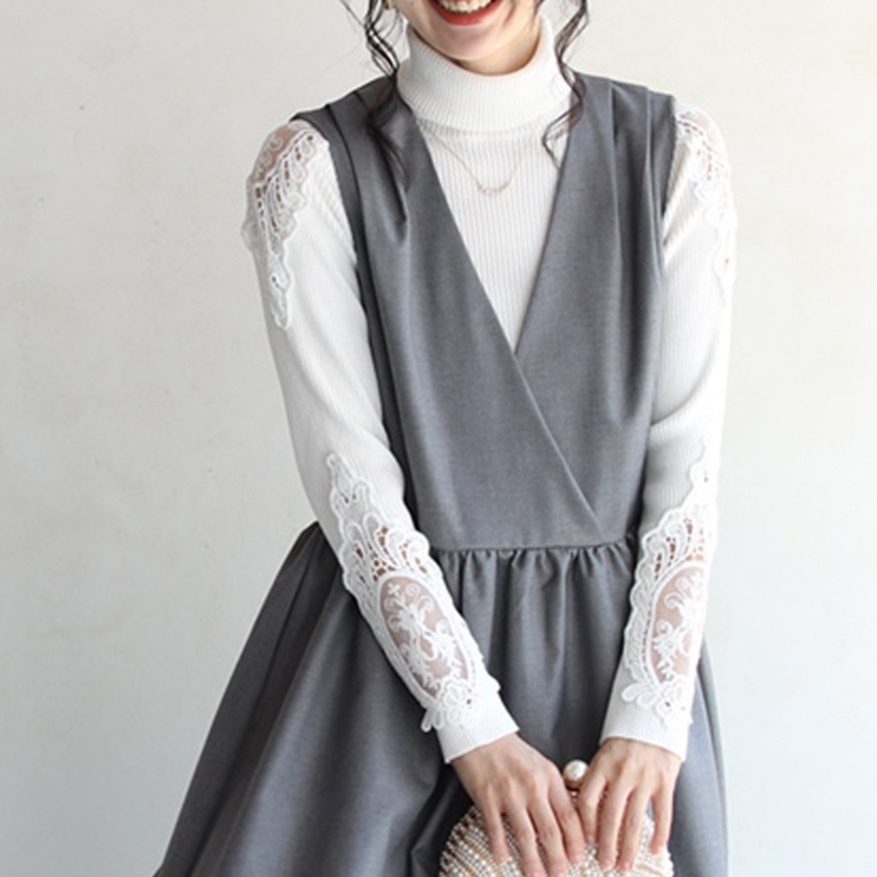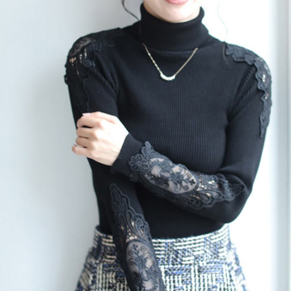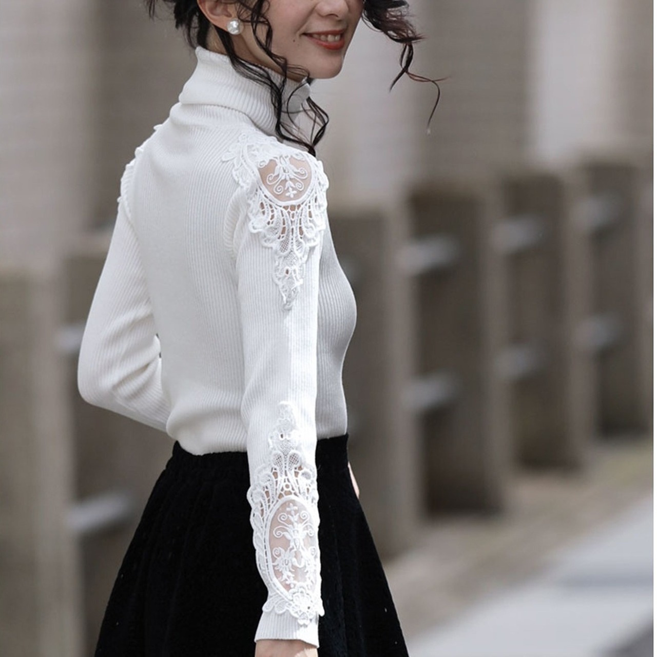 レディース トップス カットソー インナー 長袖 ハイネック スリム 細身 フェミニン レース リブ 透け感 シースルー かわいい 大人可愛い きれいめ 上品 おしゃれ こなれ感 ガーリー クール モダン 抜け感 キュート ナチュラル デート 旅行 女子会 休日 ホテル ガーデン ショッピング コンサート ライブ 合コン コンパ カフェ 婚活 モノトーン 韓国 楽ちん 普段使い 着回し モテ 清楚 インスタ映え フリーサイズ ホワイト ブラック ブルー グリーン ベーシックカラー 大人カラー 秋カラー | SPARKJOY レディースファッション