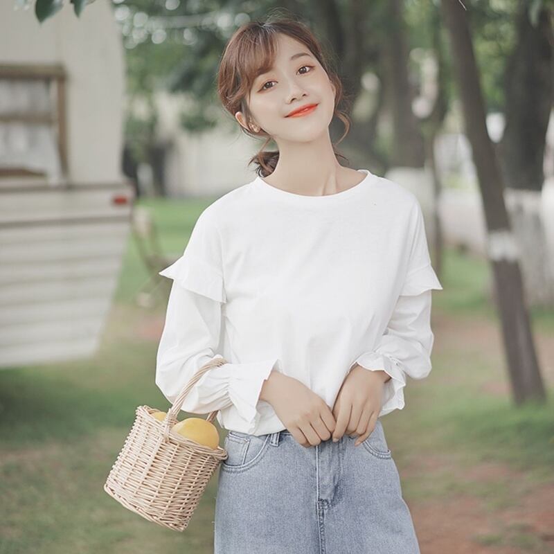 レディース トップス カットソー 長袖 ラウンドネック フェミニン かわいい 大人可愛い きれいめ シンプル カジュアル 上品 おしゃれ こなれ感 個性的 クール 抜け感 ナチュラル OL 通勤 デート お出かけ 旅行 レストラン 女子会 ホテル ショッピング コンサート ライブ 合コン コンパ カフェ フェス アースカラー モノトーン 韓国 オルチャン コーデ 楽ちん 普段使い 着回し モテ トレンド 流行 インスタ映え 定番 M L ゆったり ホワイト ブラック ベーシックカラー 大人カラー 秋カラー | SPARKJOY レディースファッション