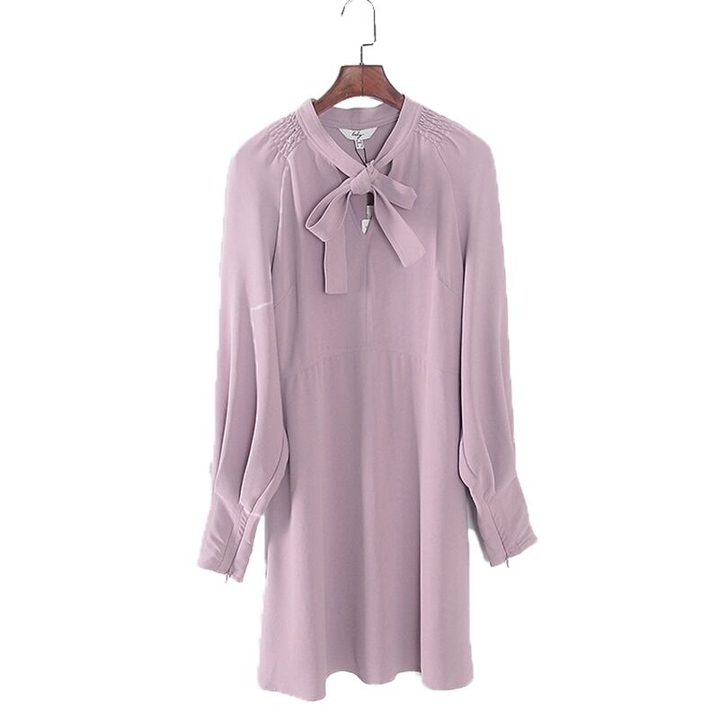 レディース ワンピース タイカラー 長袖 ボウタイ フェミニン かわいい 大人可愛い きれいめ シンプル カジュアル 上品 おしゃれ こなれ感 個性的 モード系 エレガント モダン とろみ感 抜け感 キュート ラグジュアリー ベーシック ナチュラル 無地 OL 通勤 デート お出かけ 旅行 レストラン 女子会 休日 ライブ 合コン コンパ カフェ 婚活 韓国 オルチャン コーデ 楽ちん 体型カバー 美脚 脚長 普段使い 着回し モテ 清楚 トレンド 流行 インスタ映え 定番 S 秋カラー パープル | SPARKJOY レディースファッション
