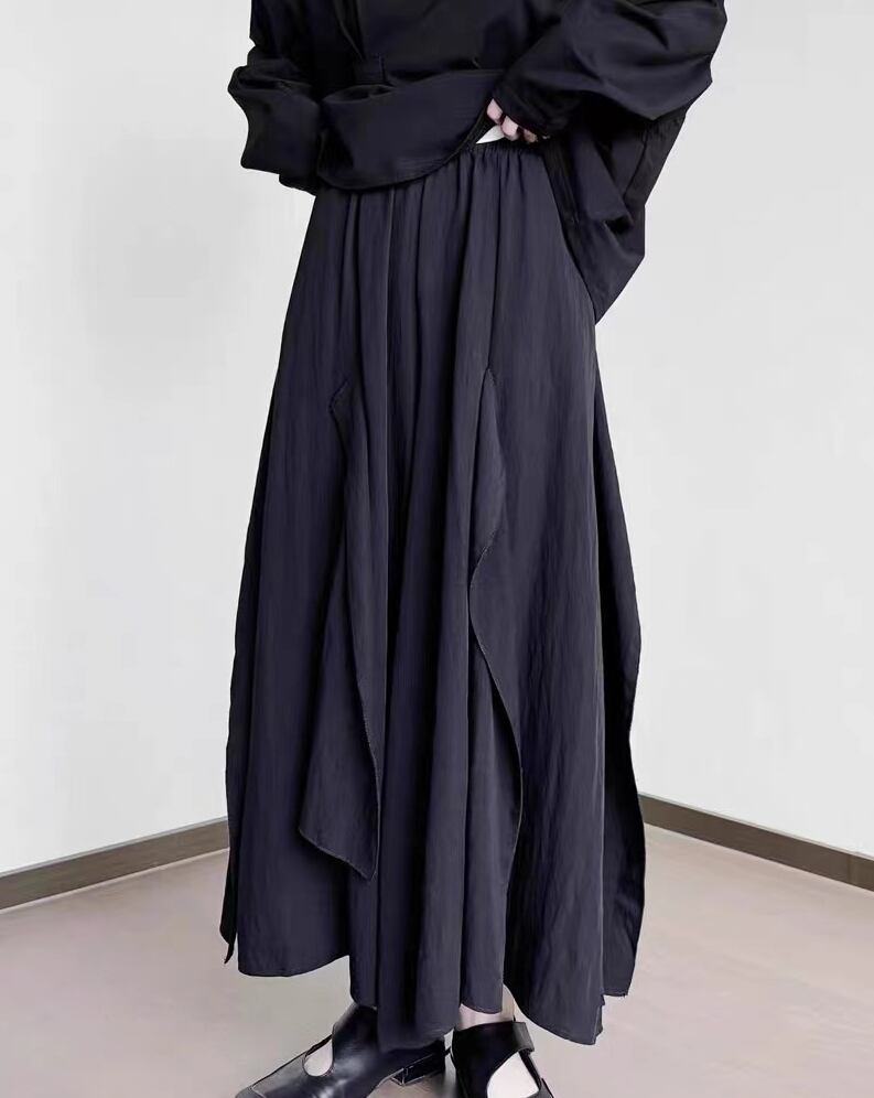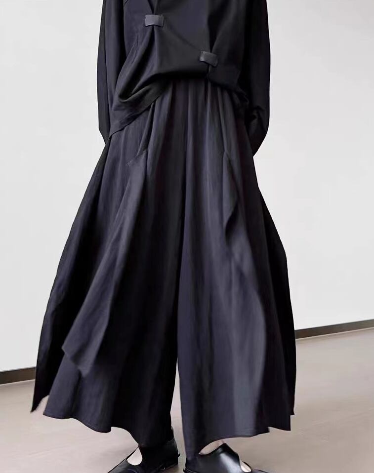 こちらのボトムスは、シンプルながらも存在感のあるロング丈のワイドパンツです。