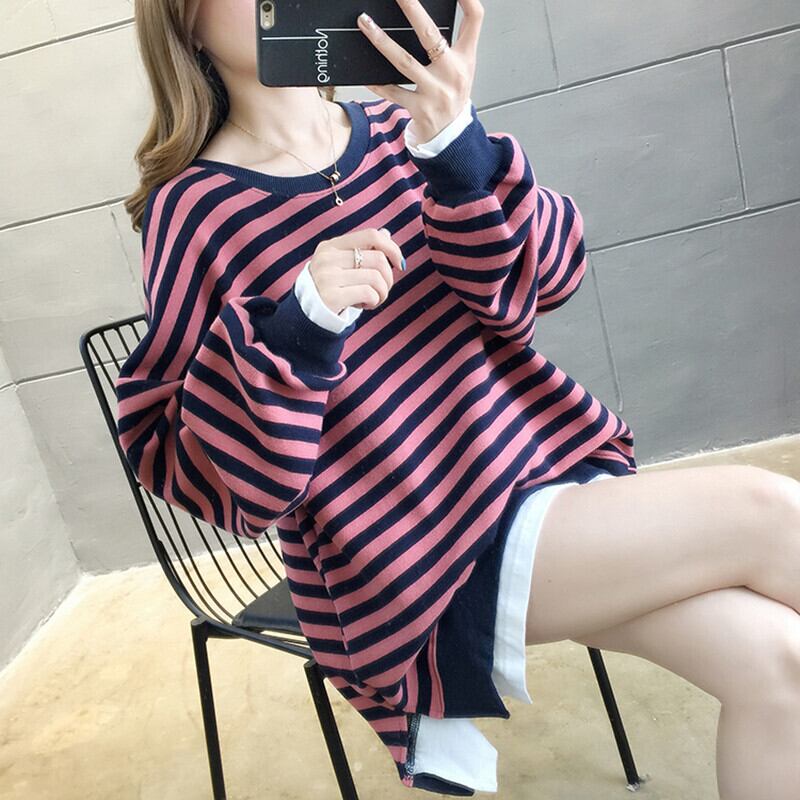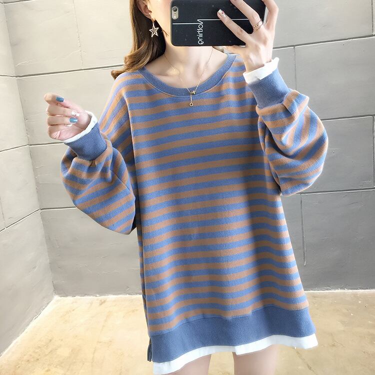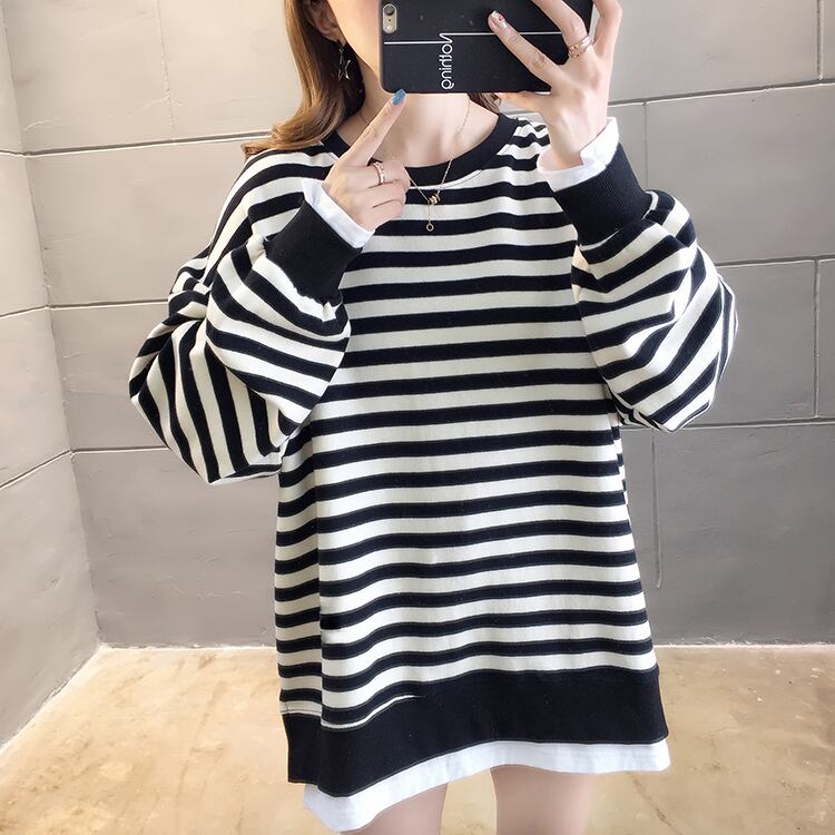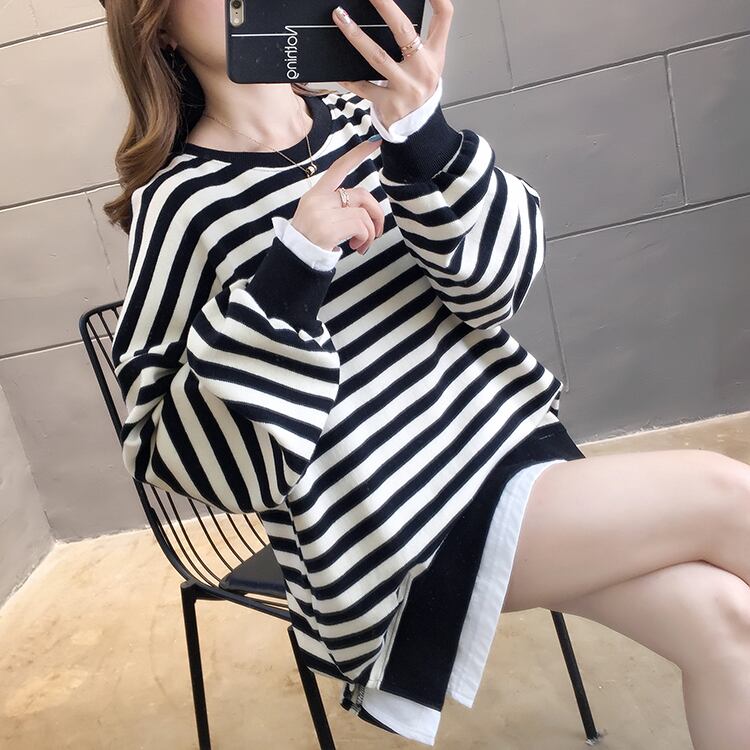 トップス カットソー 長袖 クルーネック サイドスリット フィッシュテール プルオーバー ミディアム丈 重ね着風 かわいい 可愛い 大人可愛い きれいめ シンプル 上品 レトロ おしゃれ かっこいい カジュアル こなれ感 個性的 主役級 存在感 抜け感 春 秋 ベーシック ナチュラル クール ボーダー柄 女性用 レディース ママ OL 通勤 オフィス 学生 通学 デート お出かけ お泊まり 女子会 旅行 休日 アウトドア カフェ ショッピング コンパ 普段使い デイリー 着回し M L XL 2XL | SPARKJOY レディースファッション