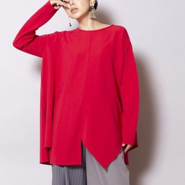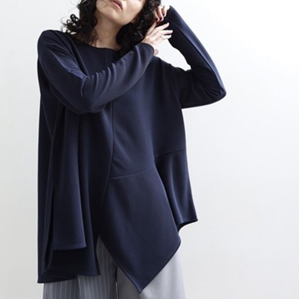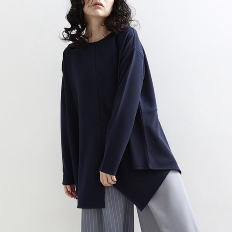 トップス カットソー 長袖 ラウンドネック プルオーバー ミディアム丈 アシンメトリー かわいい 可愛い 大人可愛い きれいめ シンプル 上品 レトロ おしゃれ かっこいい カジュアル こなれ感 個性的 主役級 存在感 ルーズ 抜け感 春 秋 ベーシック ナチュラル クール 無地 女性用 レディース ママ マタニティ OL 通勤 オフィス 学生 通学 デート お出かけ お泊まり 女子会 旅行 休日 アウトドア カフェ ショッピング コンパ 普段使い デイリー 着回し 重ね着 ワンサイズ トレンド モテ | SPARKJOY レディースファッション