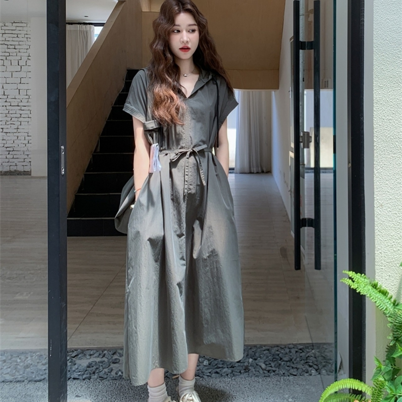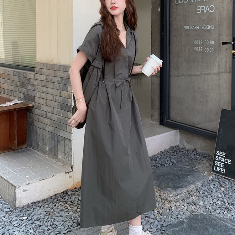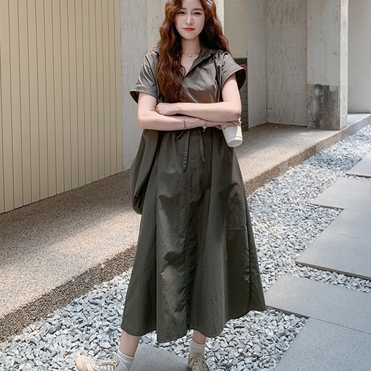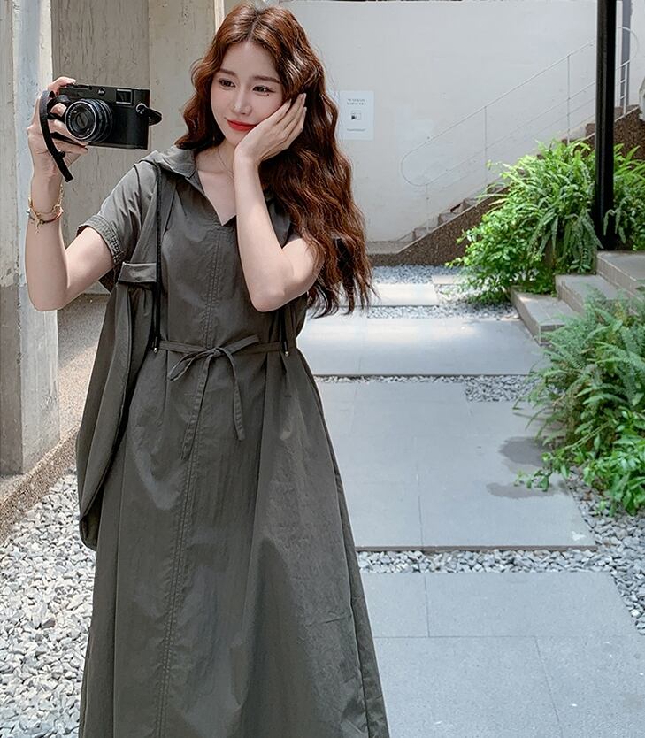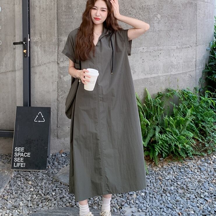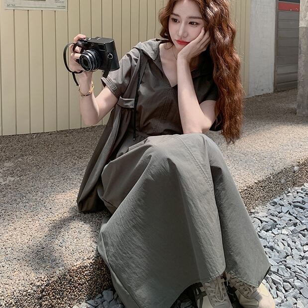 ワンピース ロングワンピース 半袖 Vネック フード付き ウエストベルト セミフレア ロング丈 かわいい 可愛い 大人可愛い きれいめ シンプル 上品 おしゃれ レトロ カジュアル こなれ感 個性的 主役級存在感 抜け感 春 夏 ベーシック ナチュラル メンズライク 無地 女性用 レディース ママ マタニティ OL 通勤 オフィス 学生 通学 デート お出かけ お泊まり 女子会 旅行 休日 カフェ ショッピング イベント コンパ 普段使い デイリー 着回し 脚長 S M L XL トレンド モテ ゆったり | SPARKJOY レディースファッション