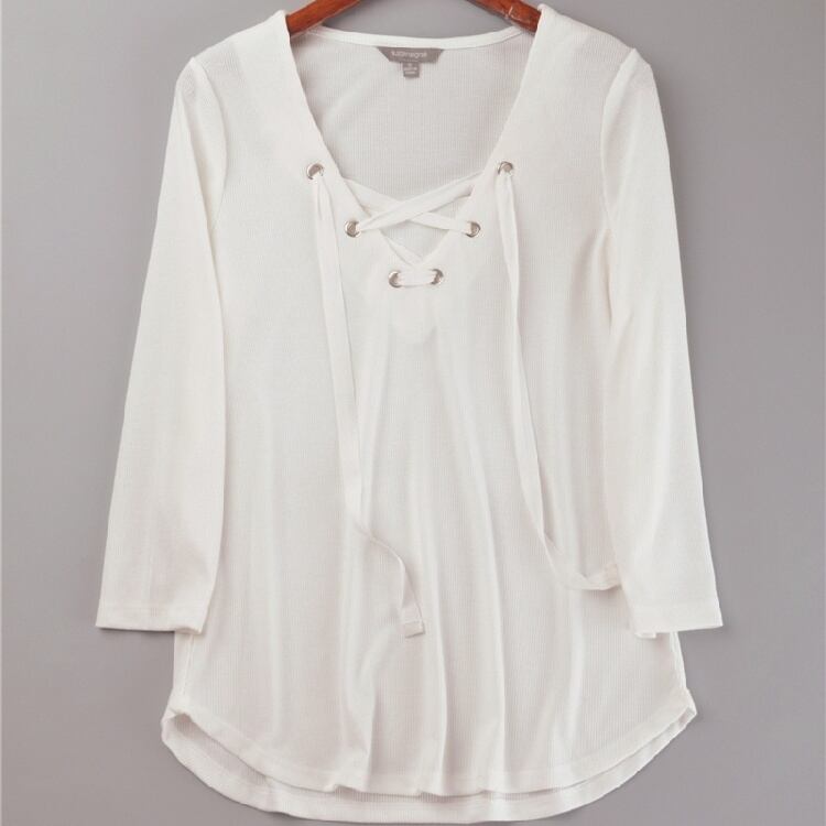 大人可愛いスタイルを演出するこなれ感満載の長袖Vネックカットソー♪♪