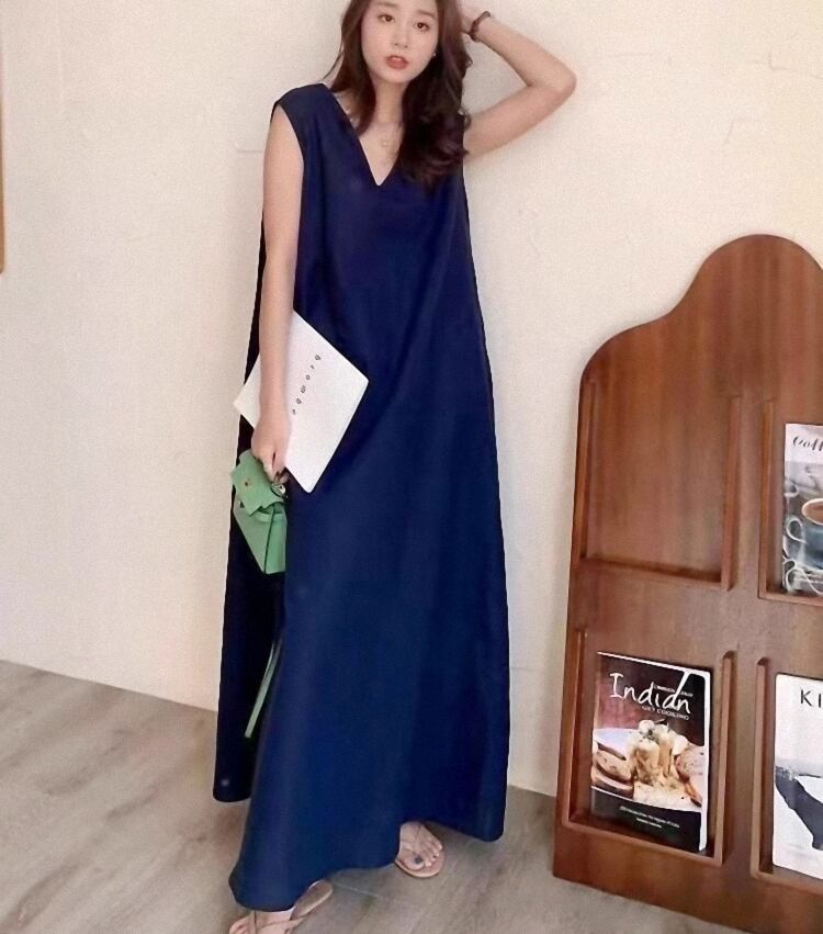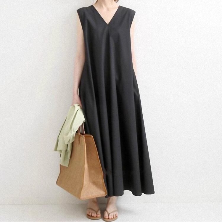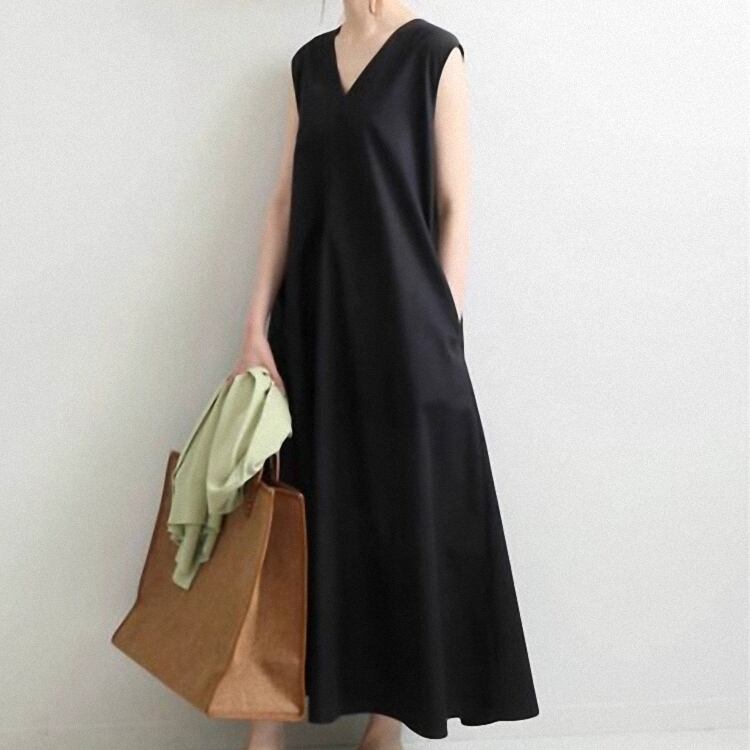 ワンピース ロングワンピース ノースリーブワンピース Vネック ポケット フレアスカート かわいい 可愛い 大人可愛い きれいめ シンプル 上品 おしゃれ レトロ カジュアル こなれ感 個性的 主役級存在感 抜け感 春 夏 ベーシック ナチュラル 無地 女性用 レディース ママ マタニティ OL 通勤 オフィス 学生 通学 デート お出かけ お泊まり 女子会 旅行 休日 リゾート カフェ ショッピング イベント コンパ 普段使い デイリー 着回し 脚長 S M L XL トレンド モテ ゆったり 楽ちん | SPARKJOY レディースファッション