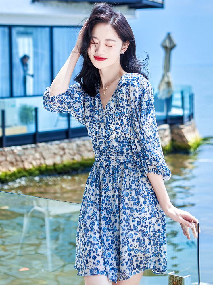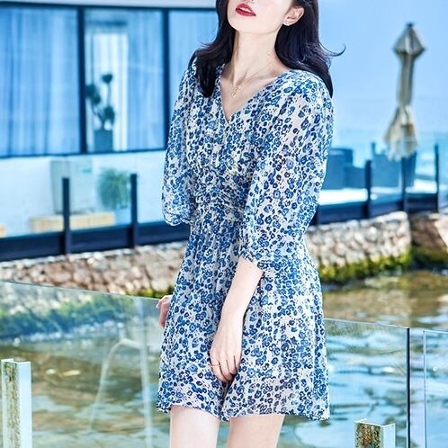 ワンピース ミニワンピース 5分袖 Vネック ウエストゴム フレアスカート ミニ丈 かわいい 可愛い 大人可愛い きれいめ シンプル 上品 おしゃれ レトロ カジュアル こなれ感 個性的 主役級存在感 抜け感 春 夏 ベーシック ナチュラル キュート 清楚 花柄 女性用 レディース ママ OL 通勤 オフィス 学生 通学 デート お出かけ お泊まり 女子会 旅行 休日 カフェ ショッピング コンパ ディナー ホテル 普段使い デイリー 着回し 重ね着 脚長 美脚 S M L XL トレンド モテ | SPARKJOY レディースファッション