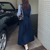 春夏にぴったりの、長袖襟付きミモレ丈ワンピースです。