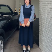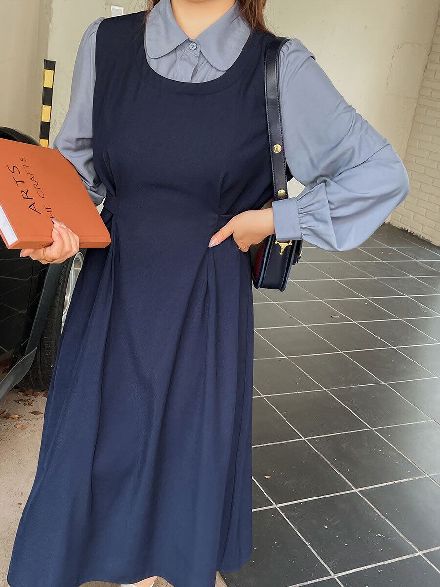 ワンピース ミモレ丈ワンピース 長袖 襟付き バックリボン 重ね着風 ミモレ丈 かわいい 可愛い 大人可愛い きれいめ シンプル 上品 おしゃれ レトロ カジュアル こなれ感 個性的 主役級存在感 抜け感 春 夏 ベーシック ナチュラル 無地 女性用 レディース ママ マタニティ OL 通勤 オフィス 学生 通学 デート お出かけ お泊まり 女子会 旅行 休日 リゾート カフェ ショッピング イベント コンパ 普段使い デイリー 着回し 脚長 XL 2XL 3XL 4XL 5XL トレンド モテ | SPARKJOY レディースファッション