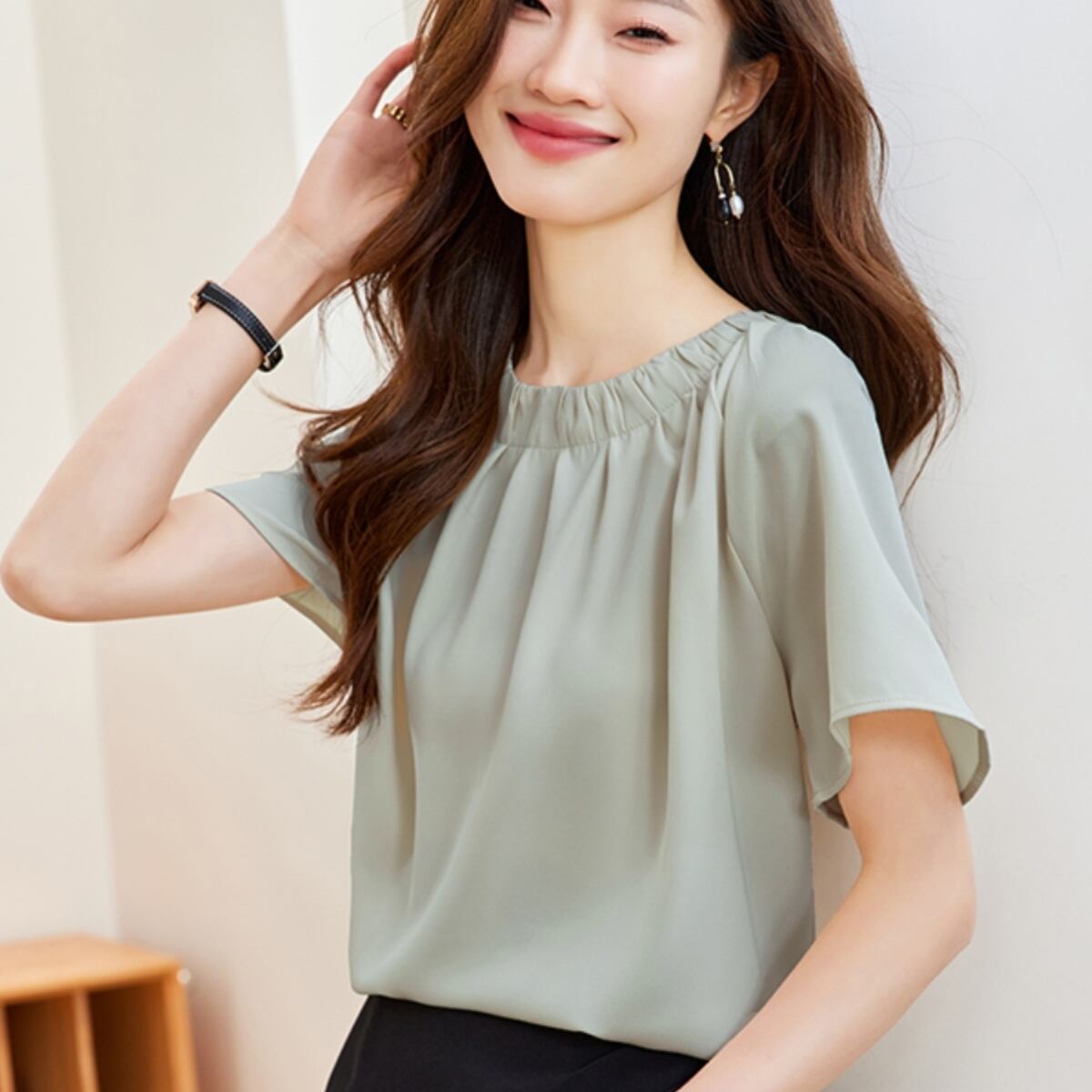 トップス シャツ シフォンシャツ 半袖 クルーネック プルオーバー ショート丈 かわいい 可愛い 大人可愛い きれいめ シンプル 上品 レトロ おしゃれ かっこいい カジュアル レトロ こなれ感 個性的 主役級 存在感 抜け感 春 夏 ベーシック ナチュラル フェミニン 清楚 フォーマル 無地 女性用 レディース ママ OL 通勤 オフィス 学生 通学 デート お出かけ お泊まり 女子会 旅行 休日 カフェ ショッピング コンパ 普段使い デイリー 着回し 重ね着 M L XL 2XL トレンド | SPARKJOY レディースファッション