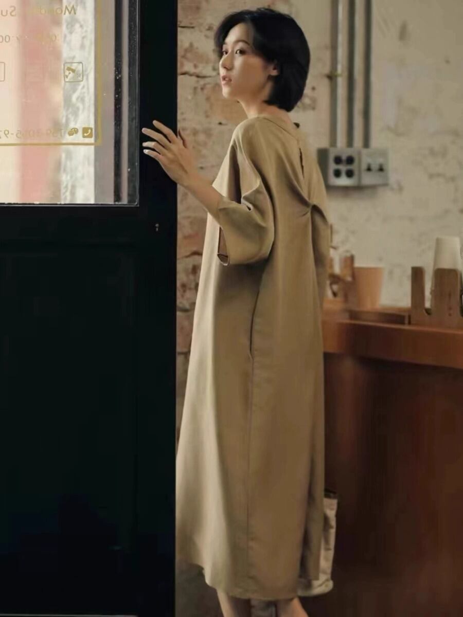 大人可愛いアイテムが欲しいあなたにぴったりのレディース ワンピース が登場!膝丈のミモレ丈で、カジュアルながらも上品さを兼ね備えた一着です。Vネックの襟なしスタイルが都会的な雰囲気を演出します。背中開きのディテールが抜け感を加え、主役級の存在感を発揮してくれます。