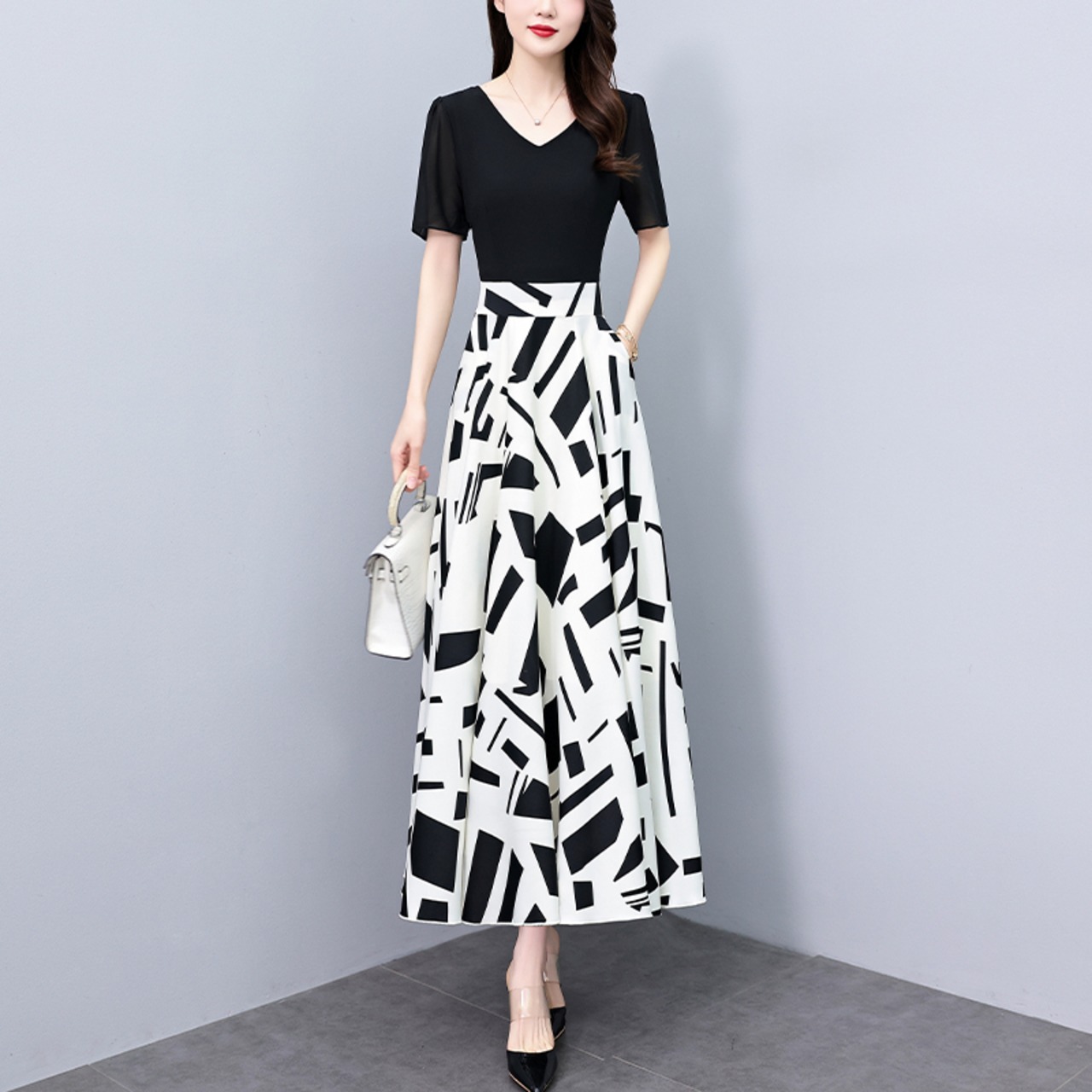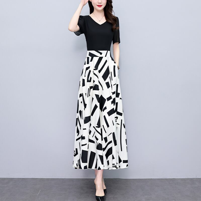 ワンピース ロングワンピース 半袖 Vネック 切り替えデザイン フレアスカート ハイウエスト ポケット かわいい 大人可愛い きれいめ シンプル 上品 おしゃれ レトロ カジュアル こなれ感 個性的 主役級存在感 抜け感 春 夏 ベーシック ナチュラル エレガント 清楚 女性用 レディース ママ OL 通勤 オフィス 学生 通学 デート お出かけ お泊まり 女子会 旅行 休日 カフェ ショッピング ディナー ホテル コンパ 普段使い デイリー 着回し 重ね着 M L XL 2XL 3XL 4XL 5XL | SPARKJOY レディースファッション
