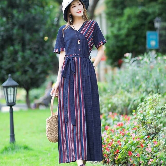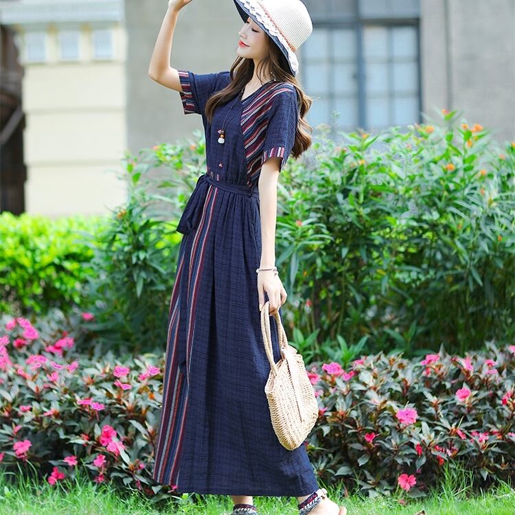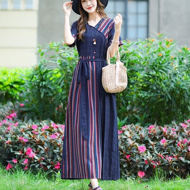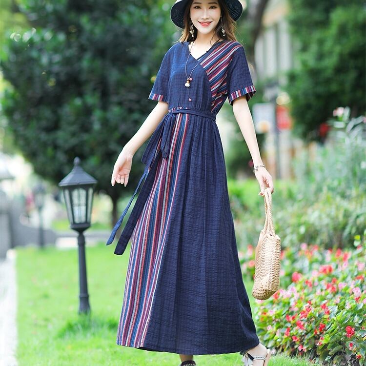 ワンピース ロングワンピース 半袖 Vネック 切り替えデザイン セミフレア ハイウエスト ウエストリボン かわいい 大人可愛い きれいめ シンプル 上品 おしゃれ レトロ カジュアル こなれ感 個性的 主役級存在感 抜け感 春 夏 ベーシック ナチュラル エレガント 清楚 女性用 レディース ママ OL 通勤 オフィス 学生 通学 デート お出かけ お泊まり 女子会 旅行 休日 カフェ ショッピング ディナー ホテル コンパ 普段使い デイリー 着回し 重ね着 M L XL 2XL トレンド モテ | SPARKJOY レディースファッション