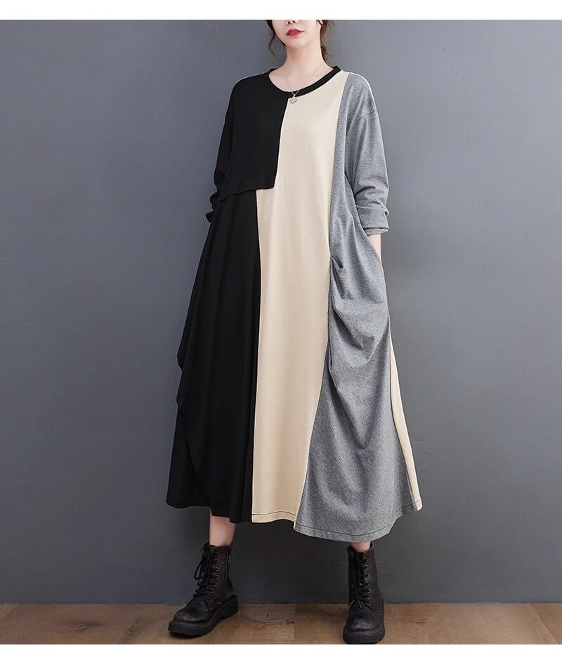 レディース スカート ワンピース カラースカート コクーンスカート ミモレ ロング アンクル丈 長袖 Uネック ストレート 切り替え ドッキング バルーン コクーン 異国風 ヴィンテージ 切り替えデザイン 配色 中厚手 綿 シンプル カジュアル おしゃれ かっこいい レトロ アジアン エスニック ラフ メンズライク マニッシュ 個性的 主役級 存在感 ベーシック ナチュラル 無地 春 秋 ママ マタニティ お出かけ 旅行 公園 女子会 休日 ショッピング コンサート ライブ お花見 カフェ フェス 楽ちん | SPARKJOY レディースファッション