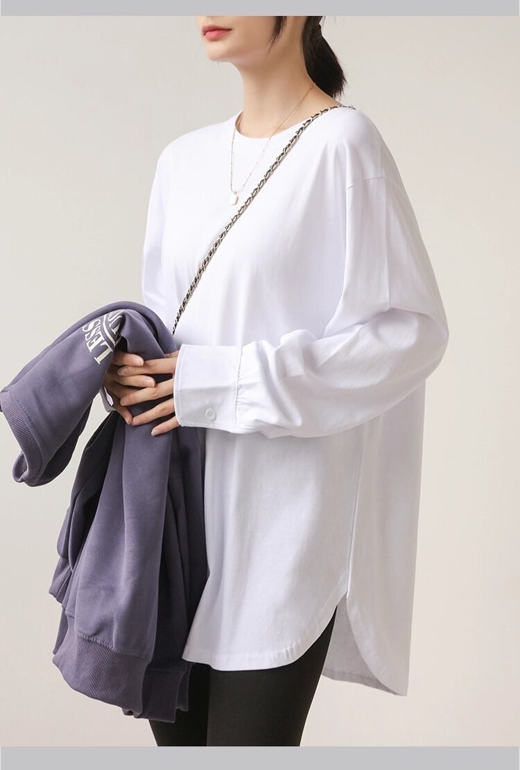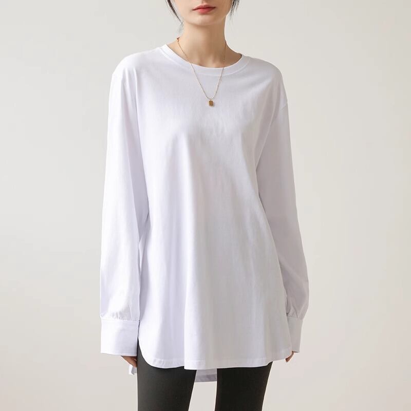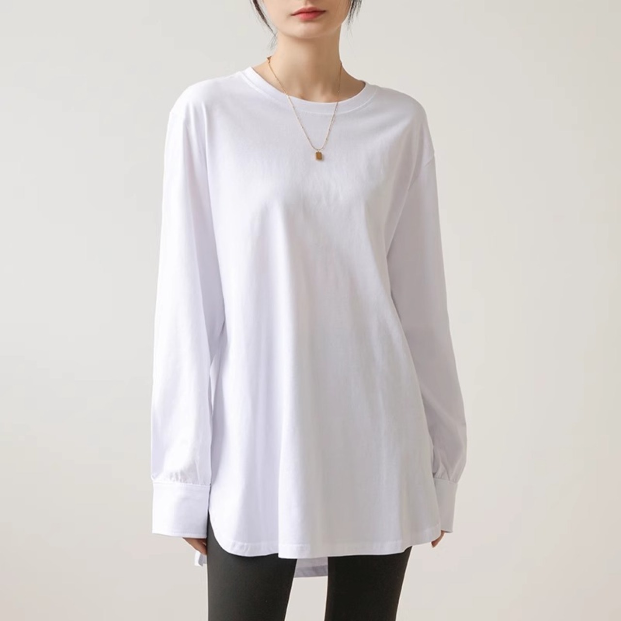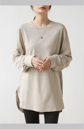 このウェットシャツは、ミモレ丈にセンスあふれるサイドスリットデザインが特徴。大人可愛い雰囲気を演出しつつ、シンプルで使いやすいアイテムです。Uネックデザインで首元をすっきり見せ、さらにワイドシルエットで楽な着心地を実現しました。薄手タイプなので、春秋の重ね着はもちろん、冬場のインナーとしても大活躍します。女子会やお出かけ、ジムや公園など、さまざまなシーンでコーディネート可能で、休日のおしゃれをランクアップさせる一枚です。