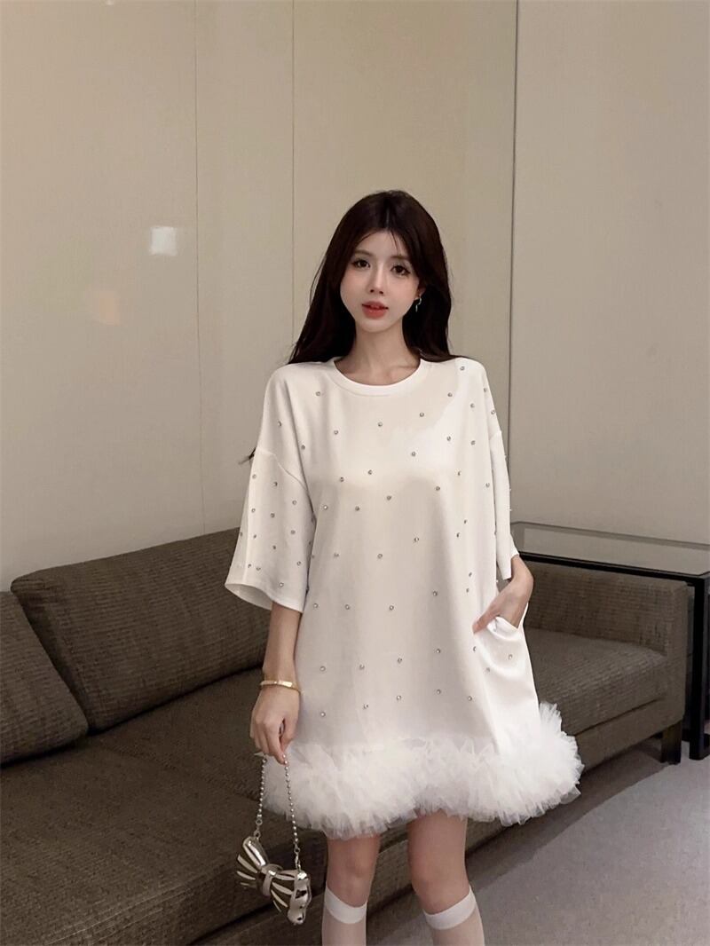 レディース ワンピース ショート 5分袖 ラウンドネック スリム Aライン かわいい 大人可愛い きれいめ シンプル カジュアル 上品 おしゃれ かっこいい レトロ エキゾチック こなれ感 ラフ ルーズ 個性的 クール エレガント 存在感 抜け感 ラブリー キュート ロマンティック ナチュラル 夏 二次会 パーティー イベント レストラン 女子会 休日 ホテル コンサート ライブ コーデ 楽ちん 体型カバー 美脚 脚長 モテ 清楚 S M L XL ホワイト ブラック ピンク ベーシックカラー 大人カラー | SPARKJOY レディースファッション