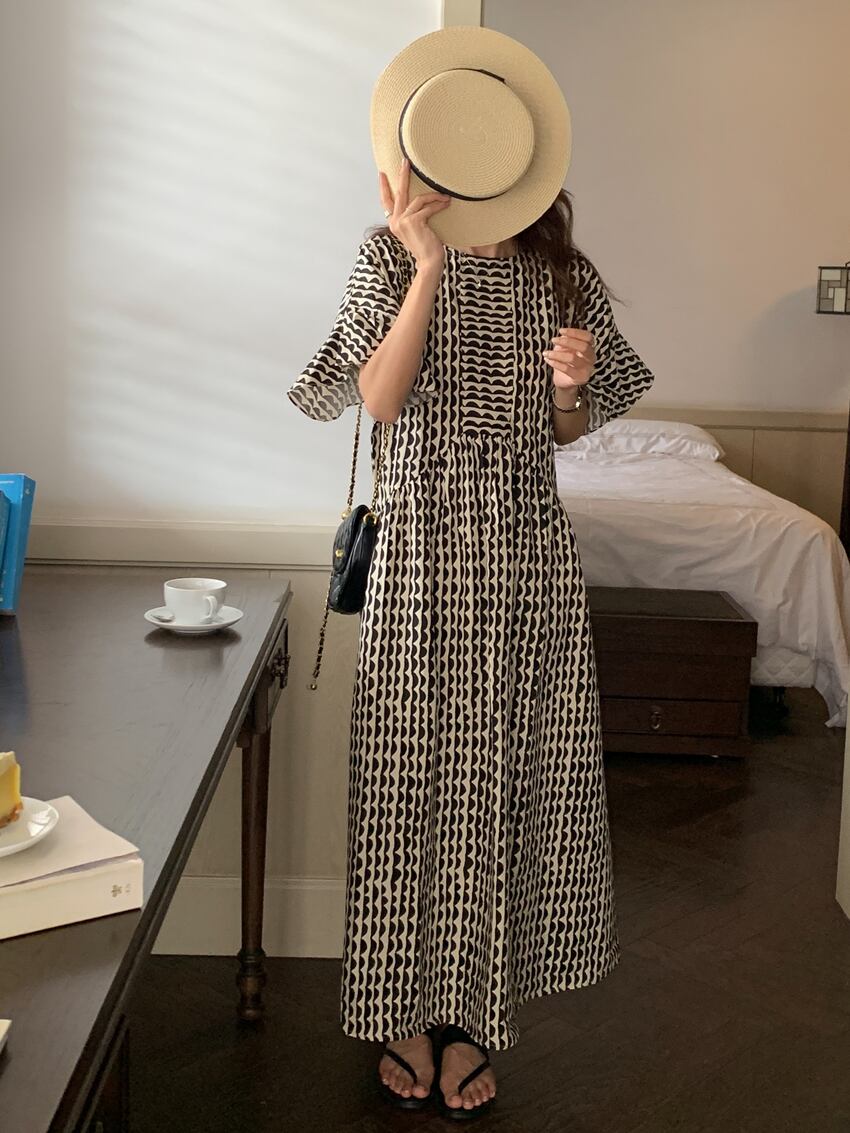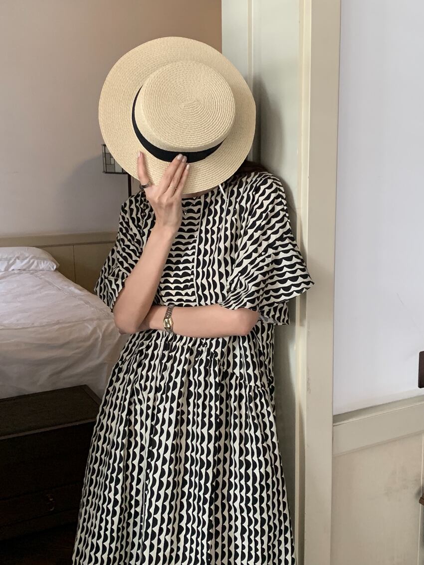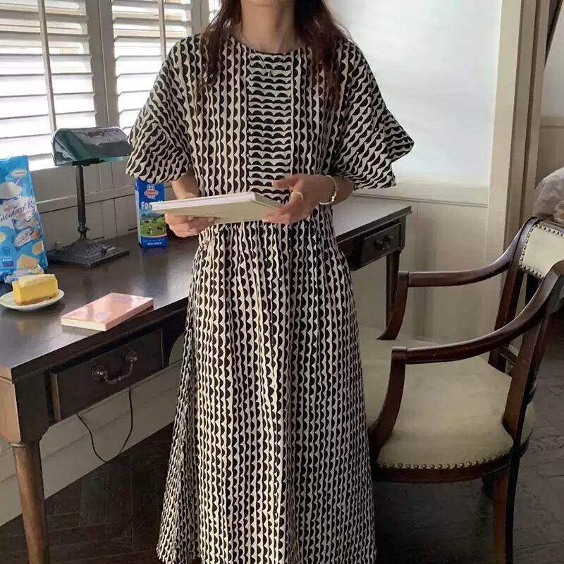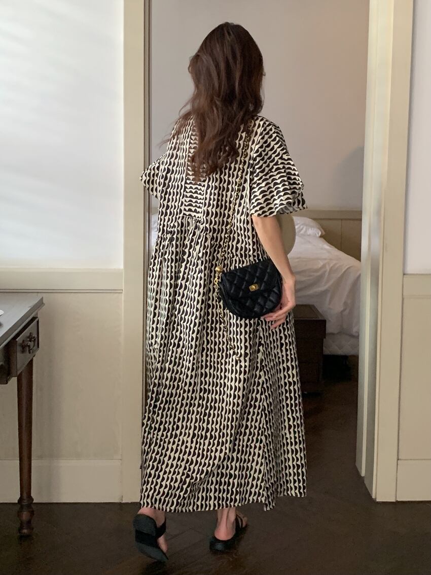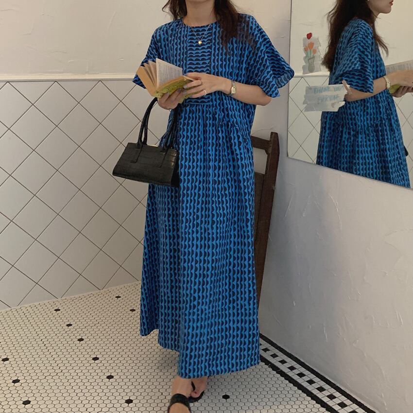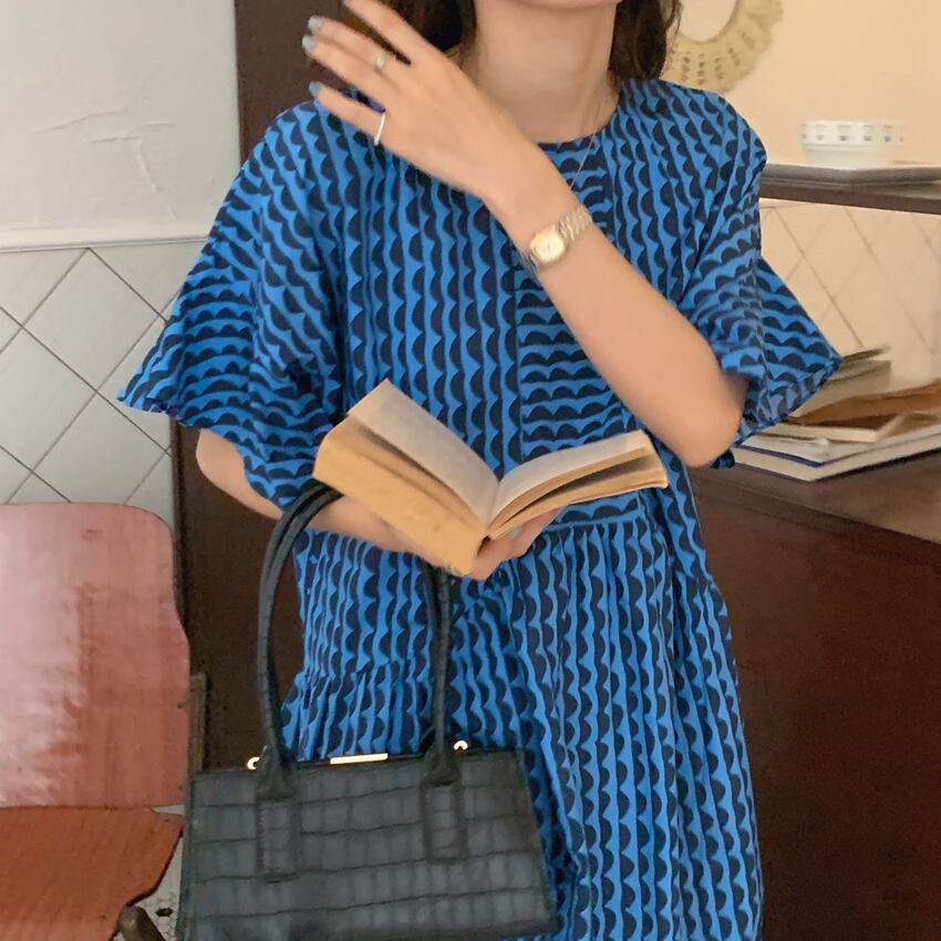 レディース ワンピース アンクル丈 5分袖 フレアスリーブ クルーネック セミフレア フェミニン かわいい 大人可愛い きれいめ シンプル カジュアル おしゃれ レトロ アジアン エキゾチック こなれ感 キュート 都会的 クラシカル ロマンティック ナチュラル ボタニカル 春 夏 デート お出かけ イベント 旅行 プール レストラン 公園 女子会 休日 ガーデン ショッピング カフェ 韓国 オルチャン コーデ 普段使い モテ 清楚 トレンド 流行 インスタ映え フリーサイズ 黒 ブラック ブルー 大人カラ | SPARKJOY レディースファッション