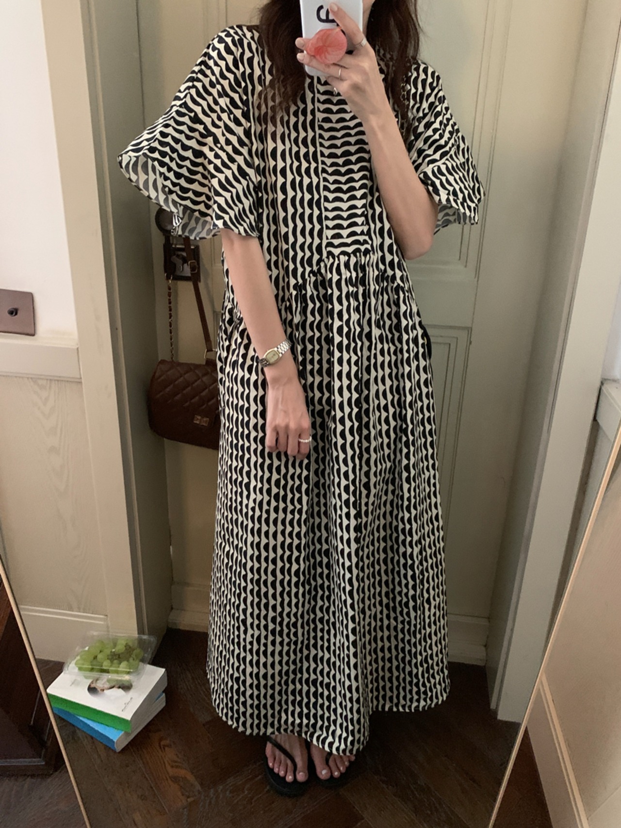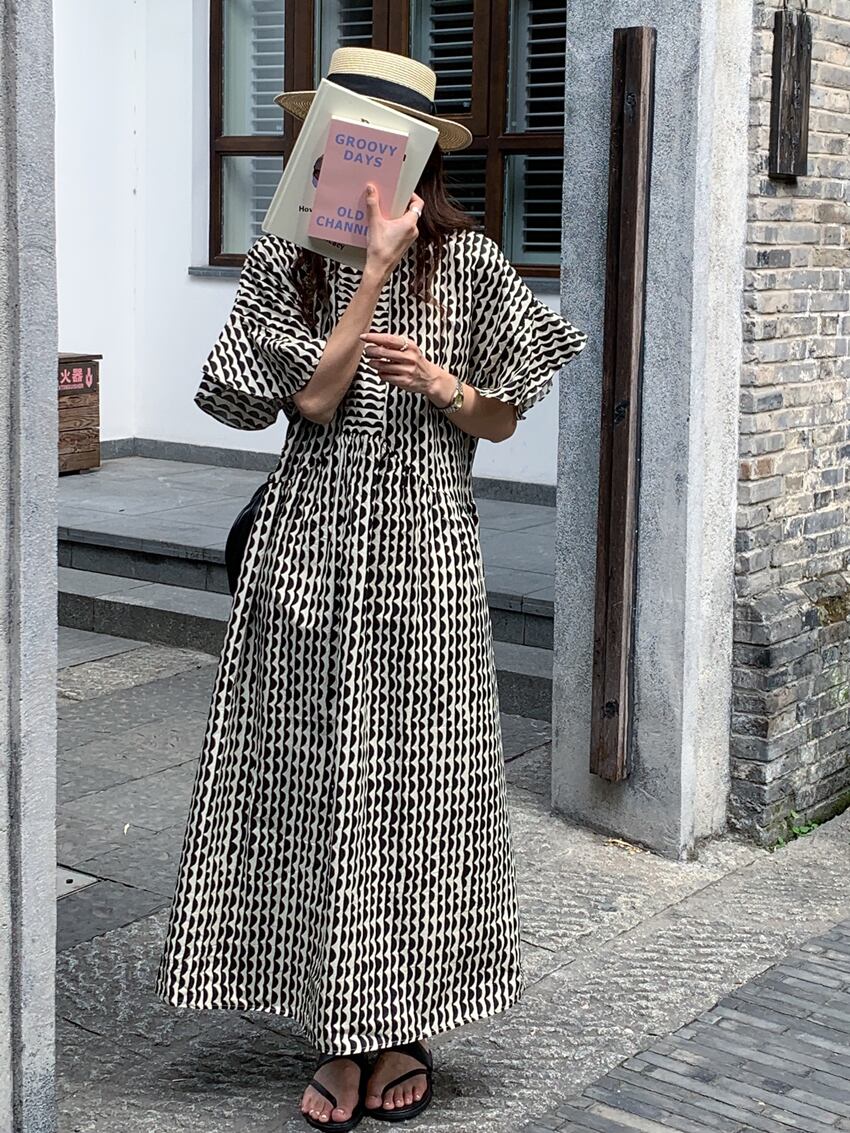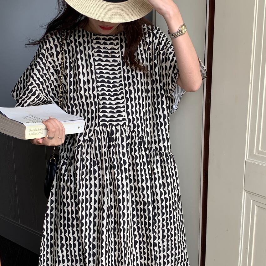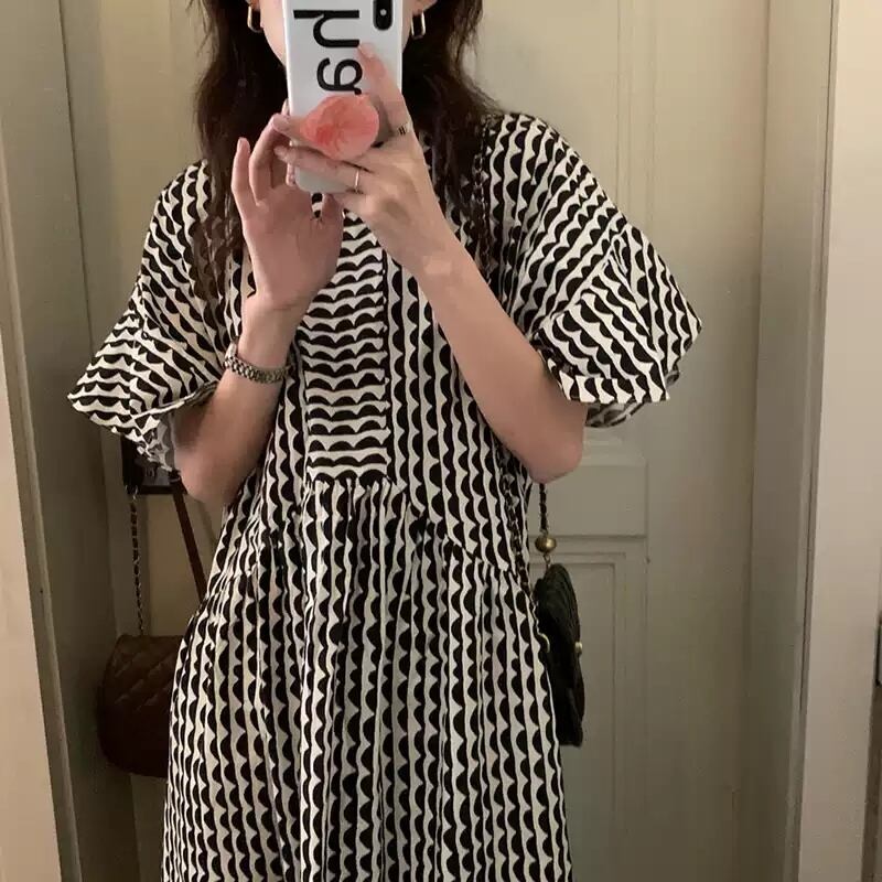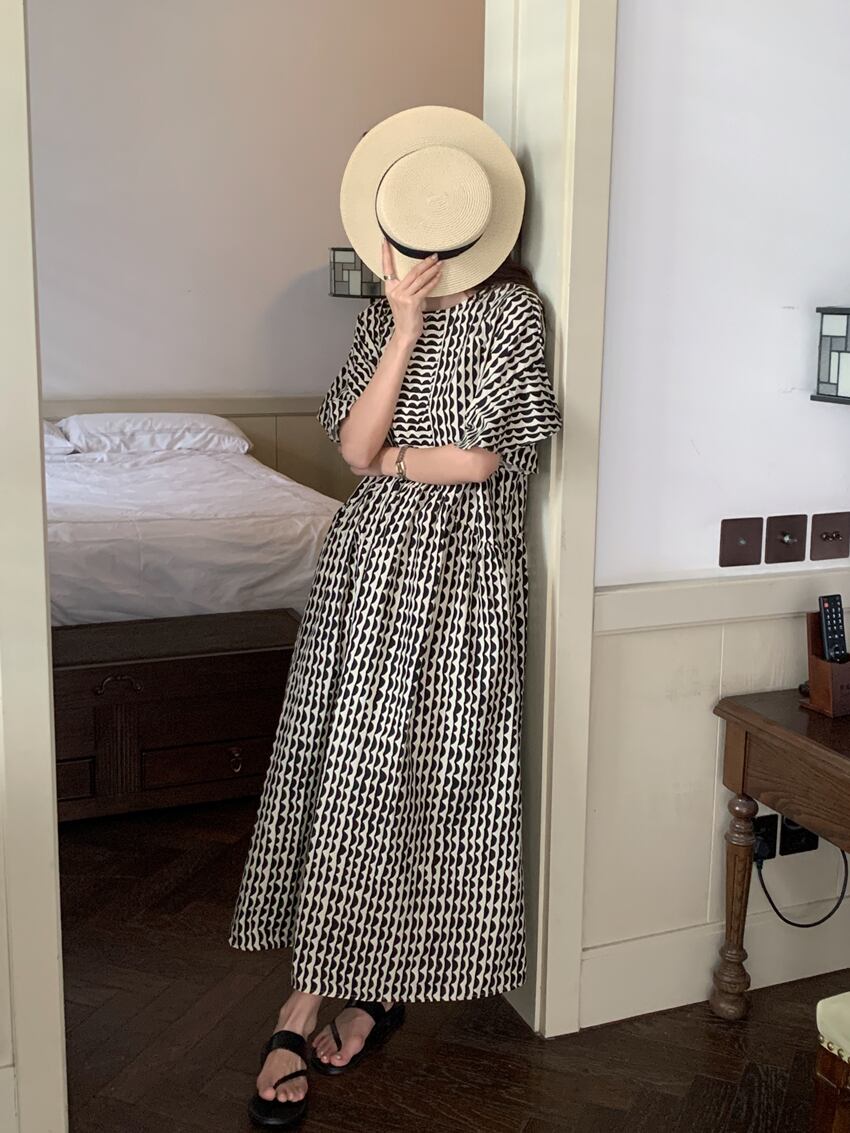 レディース ワンピース アンクル丈 5分袖 フレアスリーブ クルーネック セミフレア フェミニン かわいい 大人可愛い きれいめ シンプル カジュアル おしゃれ レトロ アジアン エキゾチック こなれ感 キュート 都会的 クラシカル ロマンティック ナチュラル ボタニカル 春 夏 デート お出かけ イベント 旅行 プール レストラン 公園 女子会 休日 ガーデン ショッピング カフェ 韓国 オルチャン コーデ 普段使い モテ 清楚 トレンド 流行 インスタ映え フリーサイズ 黒 ブラック ブルー 大人カラ | SPARKJOY レディースファッション