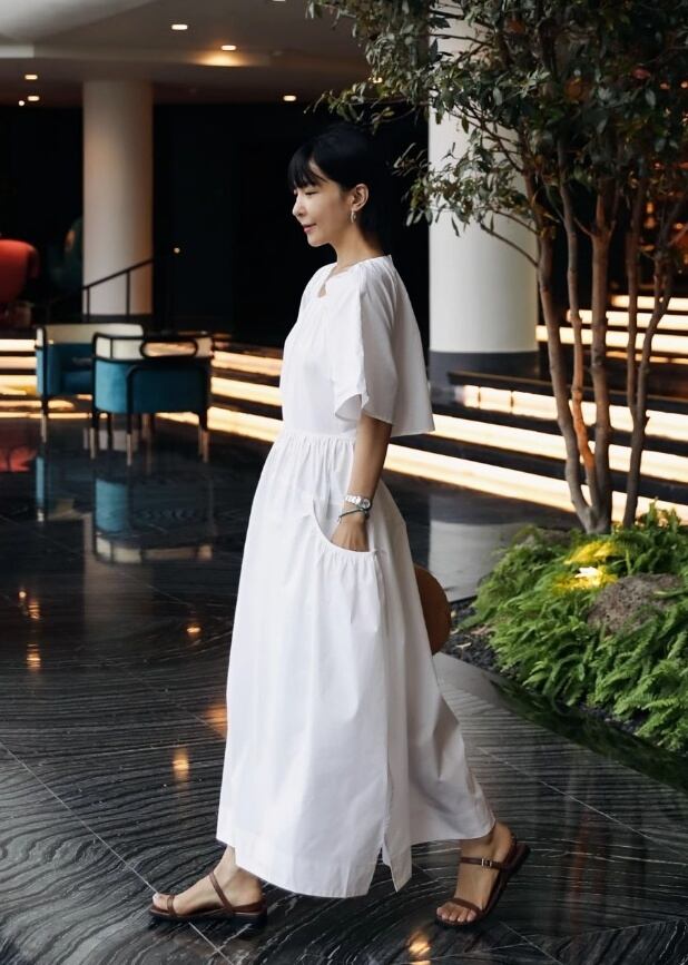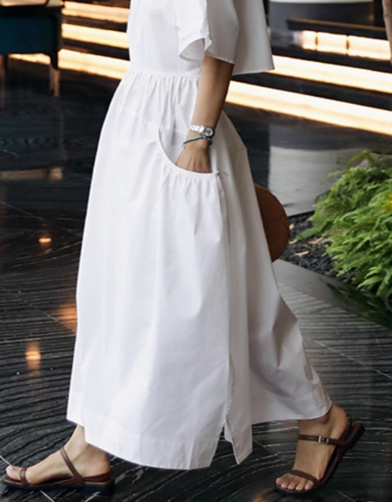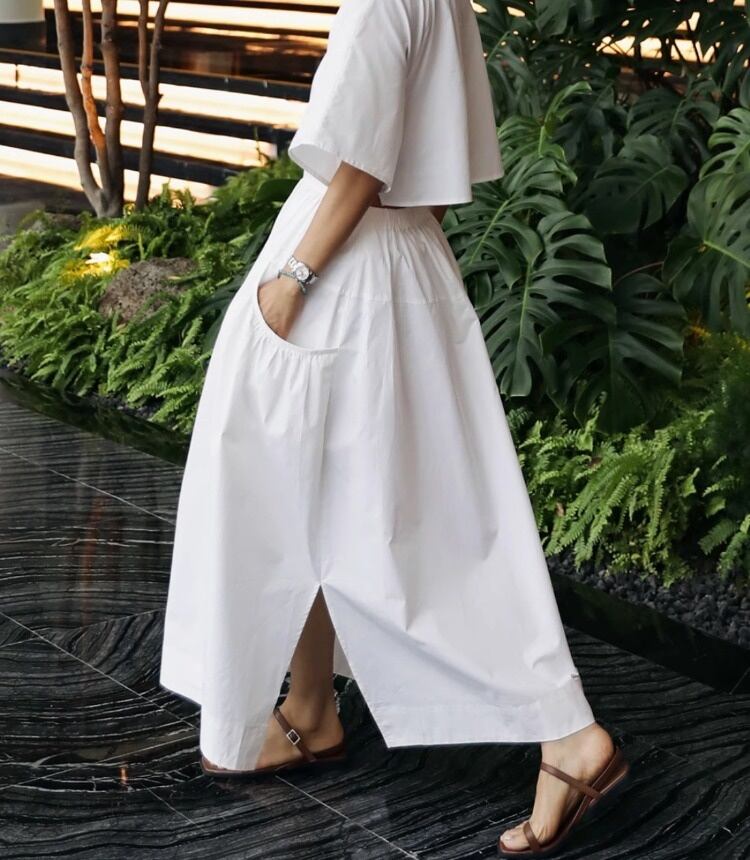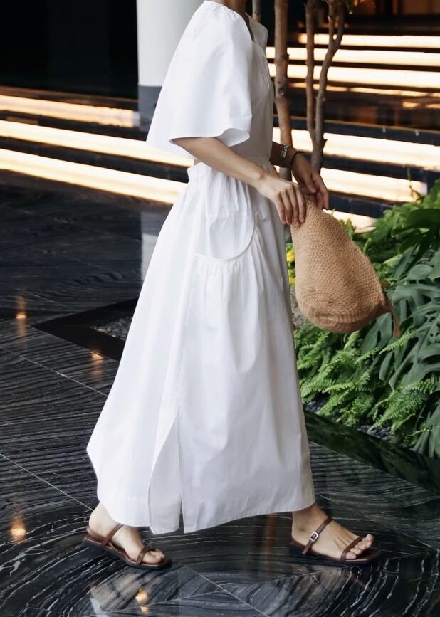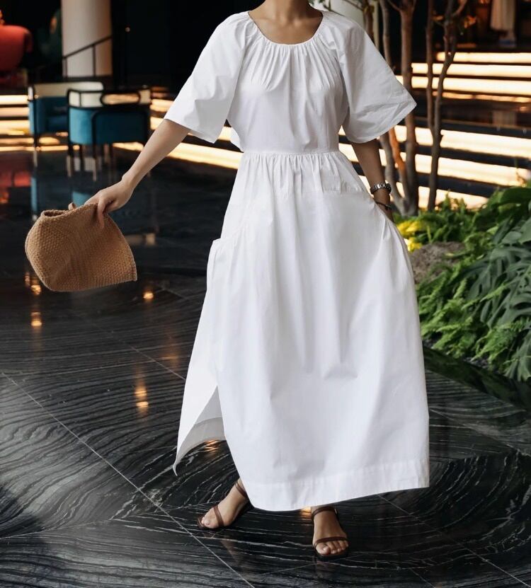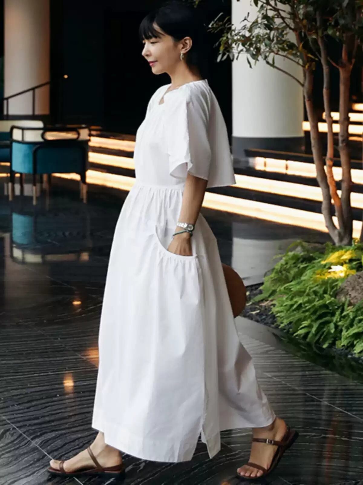 カットアウト レディース ワンピース ミモレ ロング 5分袖 クルーネック セミフレア オーバーサイズ バックコンシャス ウエストゴム かわいい 大人可愛い きれいめ シンプル カジュアル 上品 おしゃれ こなれ感 キュート 都会的 抜け感 ナチュラル 無地 春 夏 デート お出かけ イベント リゾート 旅行 レストラン 女子会 休日 バカンス ホテル ガーデン ショッピング コンパ カフェ 韓国 オルチャン コーデ 普段使い モテ 清楚 トレンド 流行 インスタ映え 定番 S M L XL 白 ホワイト | SPARKJOY レディースファッション